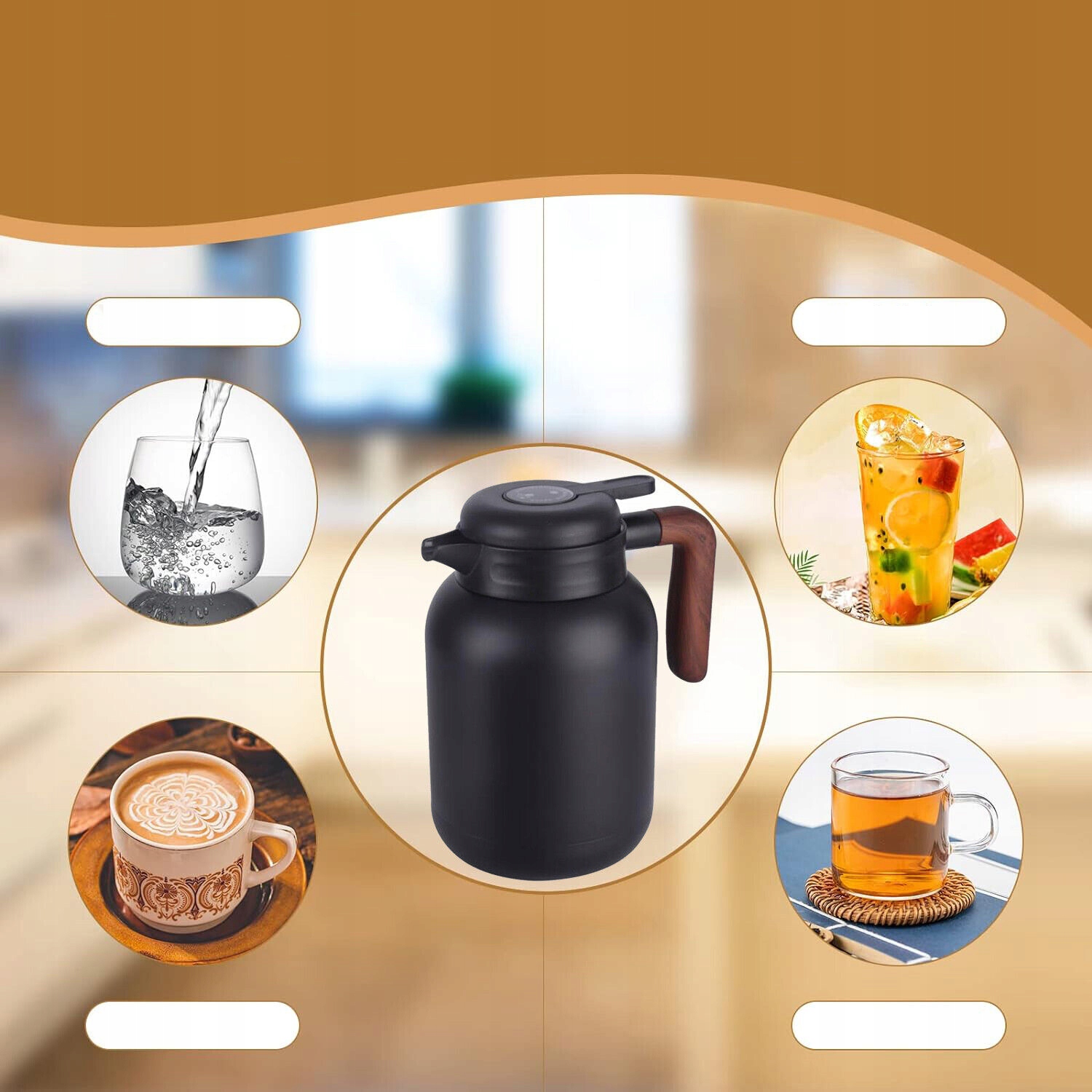 ❄️ Універсальне використання -Грілка підходить для зберігання та подачі різноманітних напоїв, зокрема кави, чаю, гарячої води, холодного чаю, соків тощо, зберігаючи їхню температуру протягом довшого часу.
