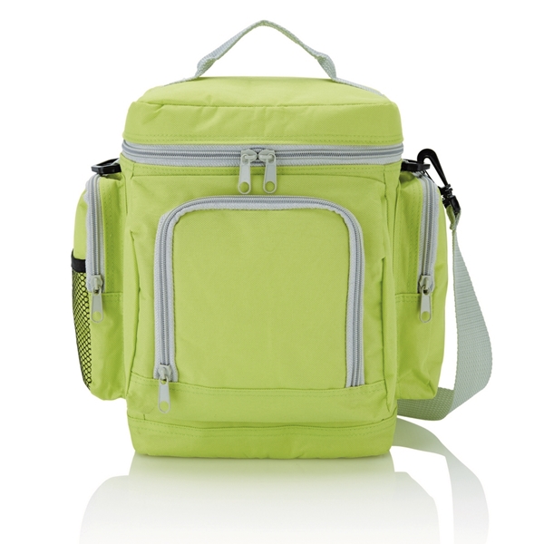 Зручна сумка-холодильник із поліестеру 600D із кількома відділеннями та регульованим плечовим ременем. Ідеально підходить для пікніка чи озера.