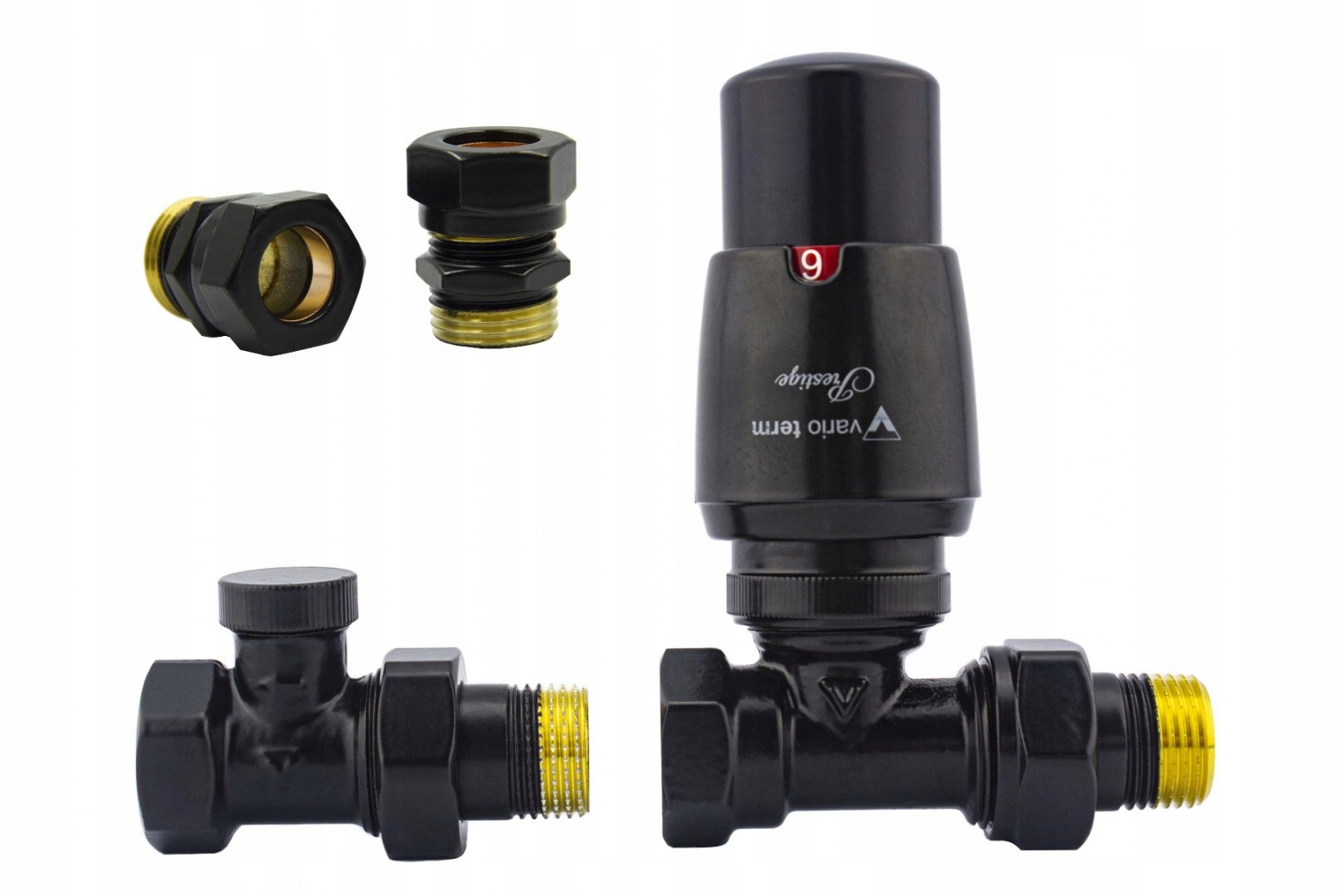 Термостатичний клапан ELEGANT, прямий чорний, матовий Cu