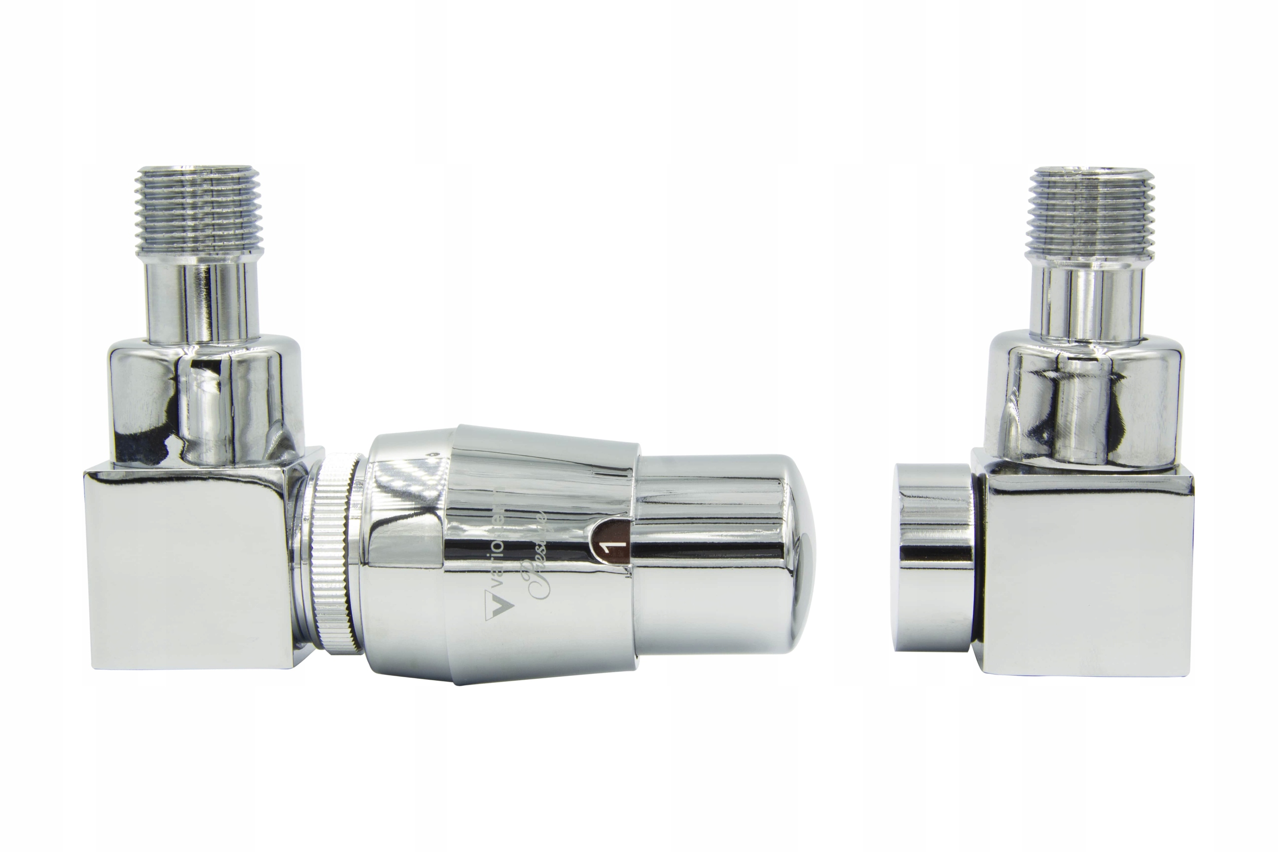 Триосьові термостатичні клапани Quattro в хромі + з’єднувачі для монтажу Pex16 мм – 2 штуки (з’єднувачі для встановлення з міді за запитом – запит щодо інформації в Примітках для продавця) ліворуч (праворуч за запитом ) .