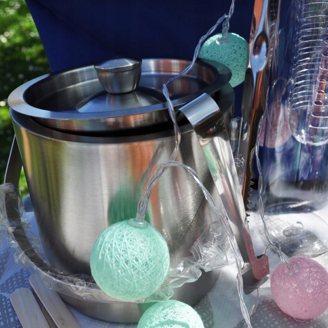 Набір оснащений сталевою кришкою, ситечком і металевими щипцями для льоду, завдяки яким ви можете елегантно подавати кубики льоду до напоїв. Відерце добре термоізольоване, що дозволяє кубикам льоду довше зберігати форму.