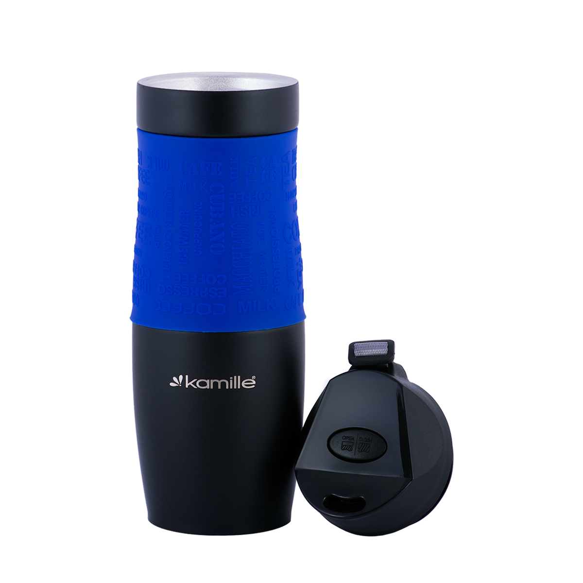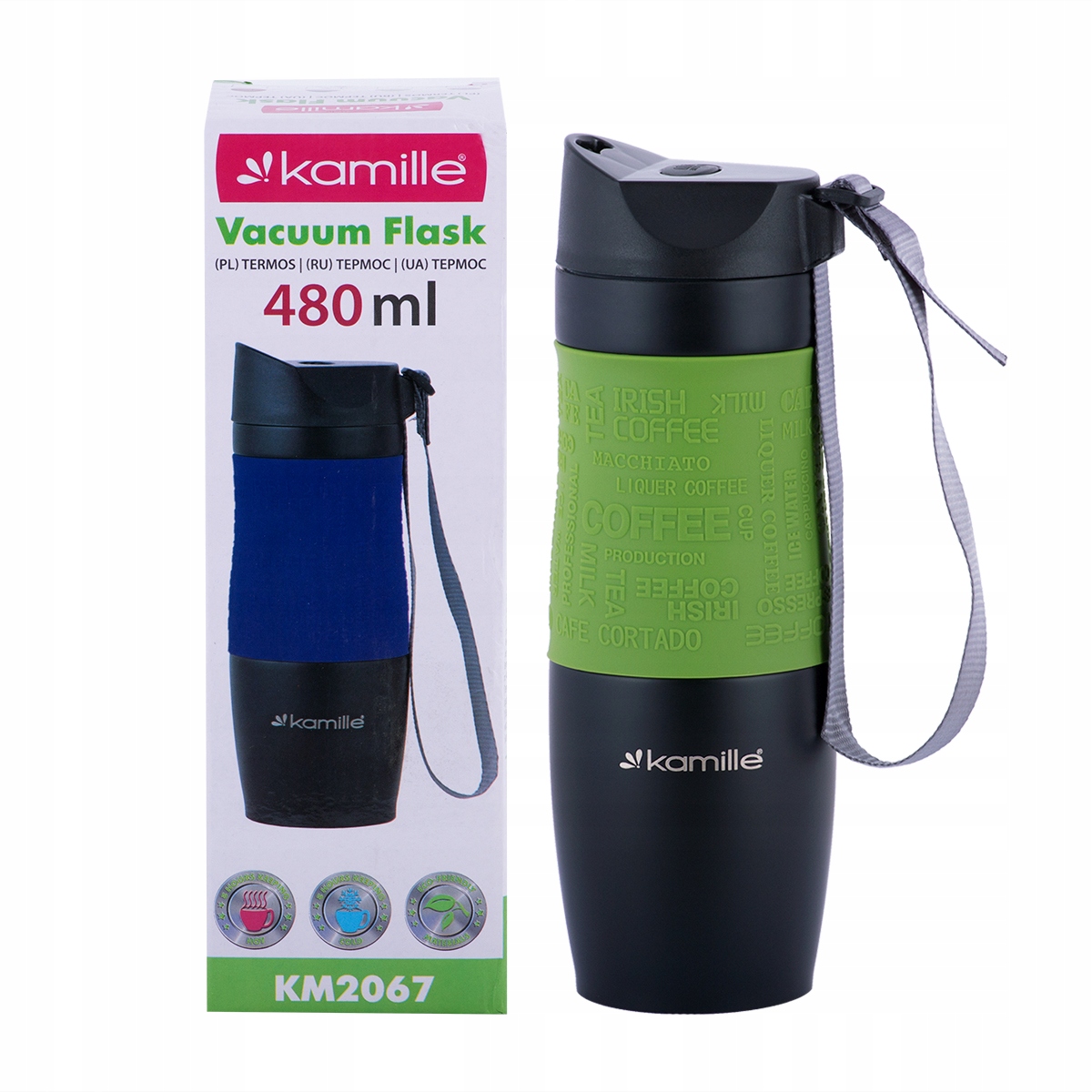 Термокружка 480 мл з нержавіючої сталі з протиковзким покриттям і ремінцем KAMILLE KM-2067