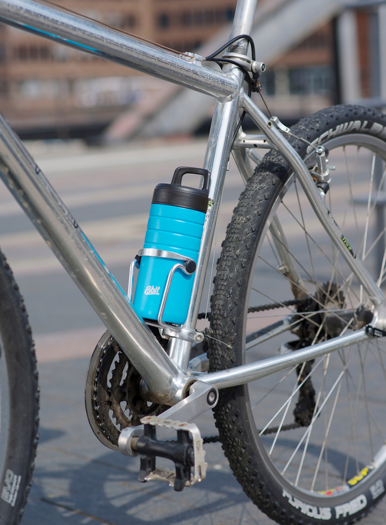 - Ковпачок обладнано ручкою, яка полегшує кріплення чашки до рюкзака