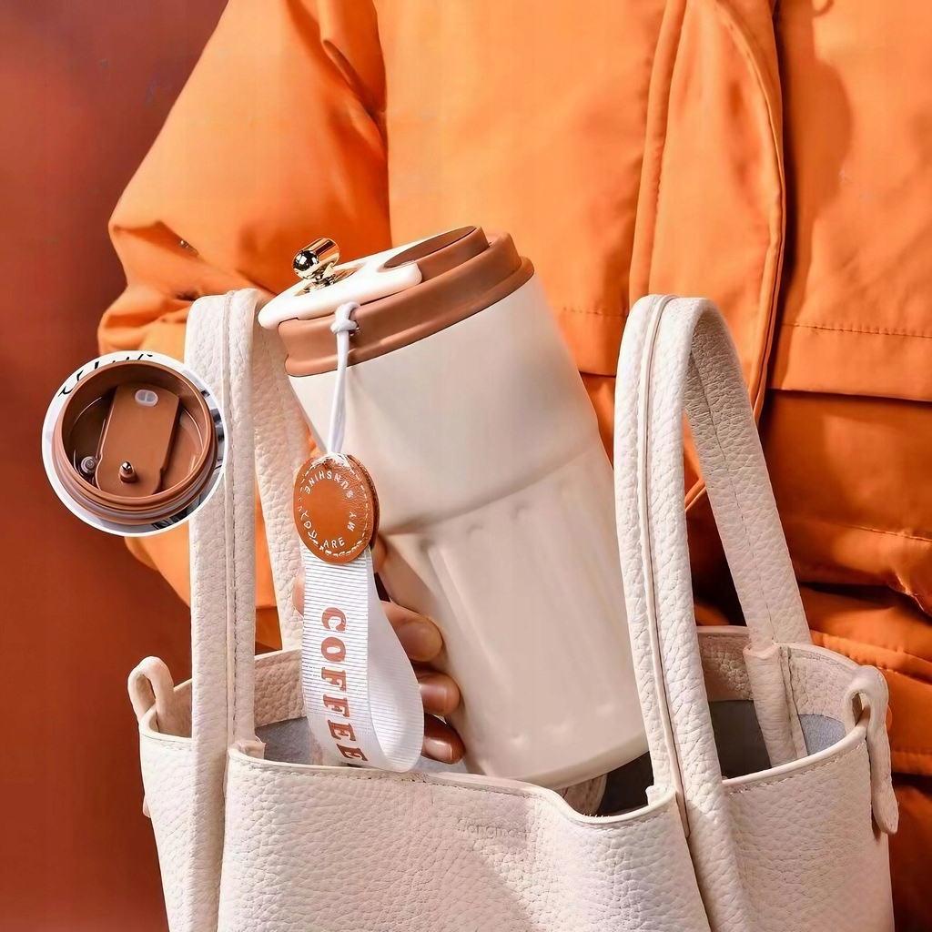 Завдяки міцній ручці з написом «COFFEE» ви можете зручно носити термос куди завгодно. 🚶♀️👜 Крім того, це виглядає надзвичайно модно та привертає увагу. 👀💖