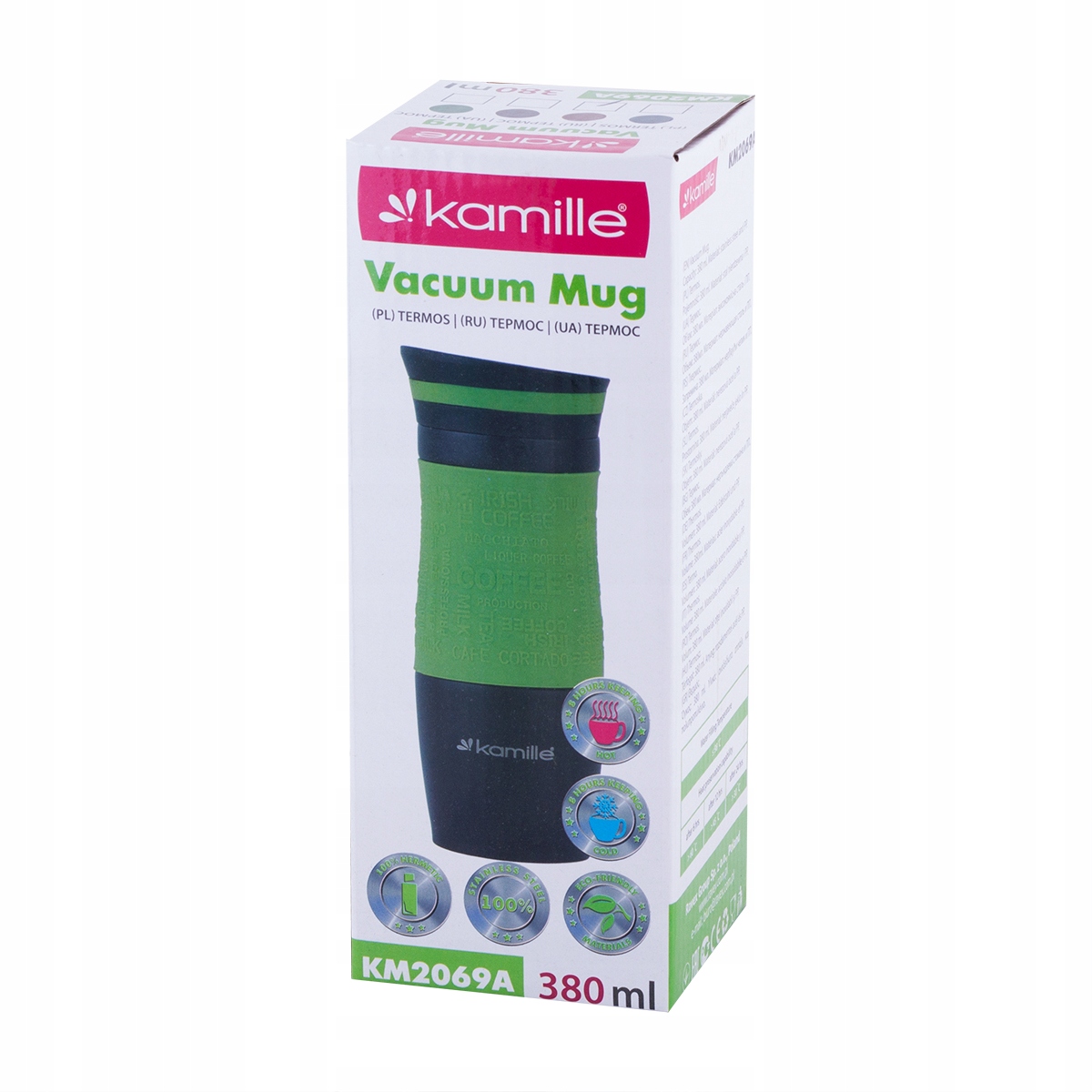 Термокружка 380 мл з нержавіючої сталі з протиковзким покриттям KAMILLE KM-2069A