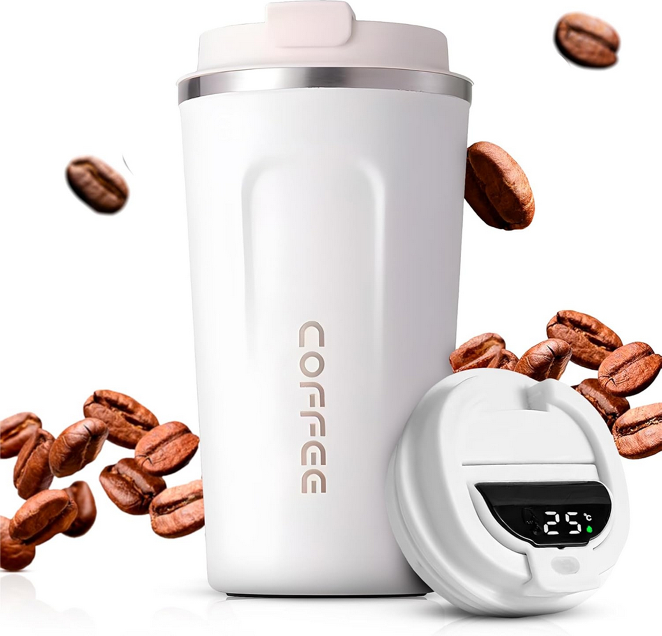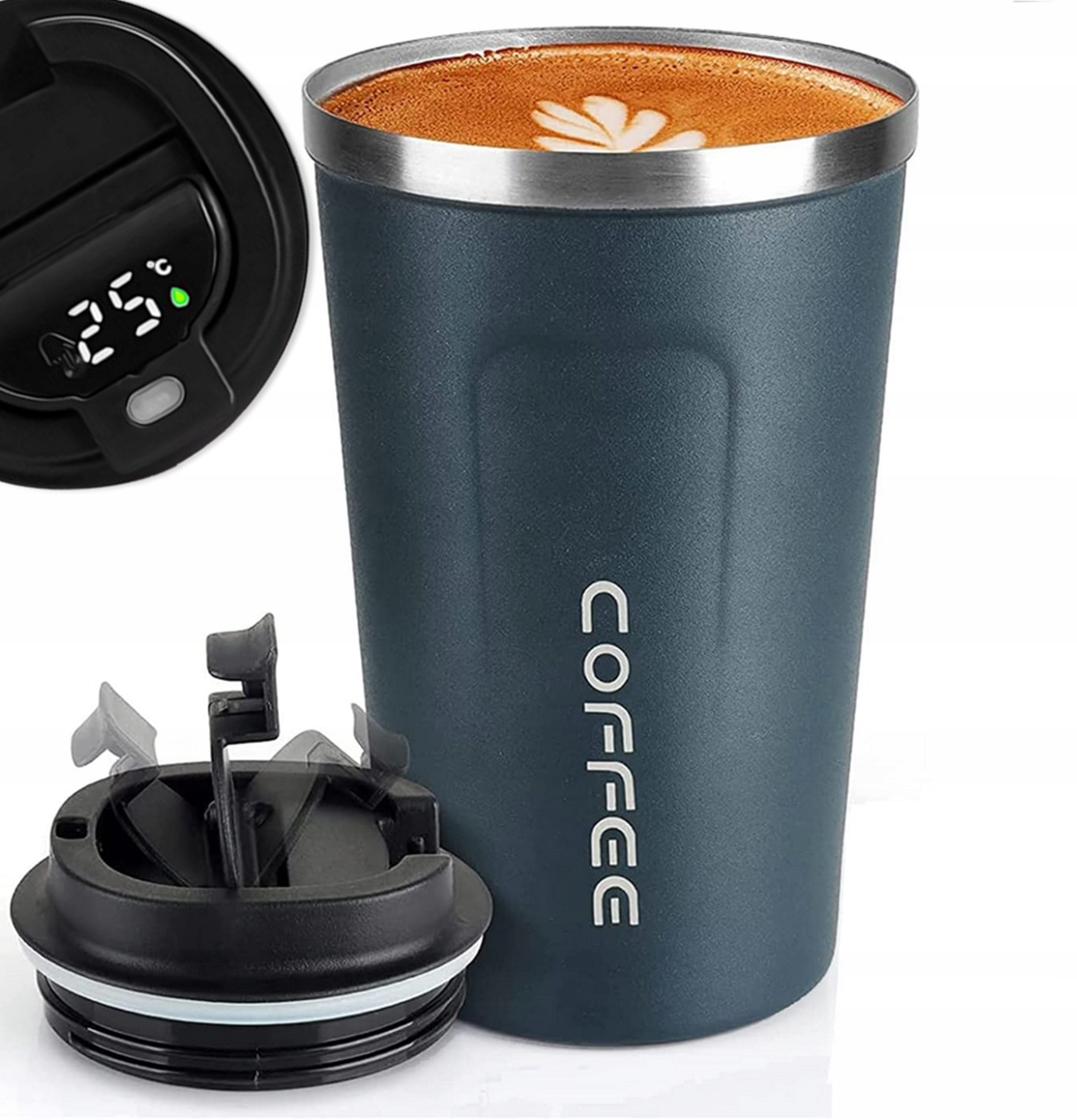 ✅Термокружка виготовлена з нержавіючої сталі та твердого пластику. Оснащений РК-дисплеєм, що показує поточну температуру напою, і світлодіодом, що активується кнопкою, що показує температуру рідини (холодна / гаряча). Він дуже надійно тримає руку завдяки використанню матового матеріалу та ергономічному дизайну. Також має кришку, яка управляється зручною кнопкою. Він ідеально підходить для зберігання холодних і гарячих напоїв завдяки хорошим теплоізоляційним властивостям.