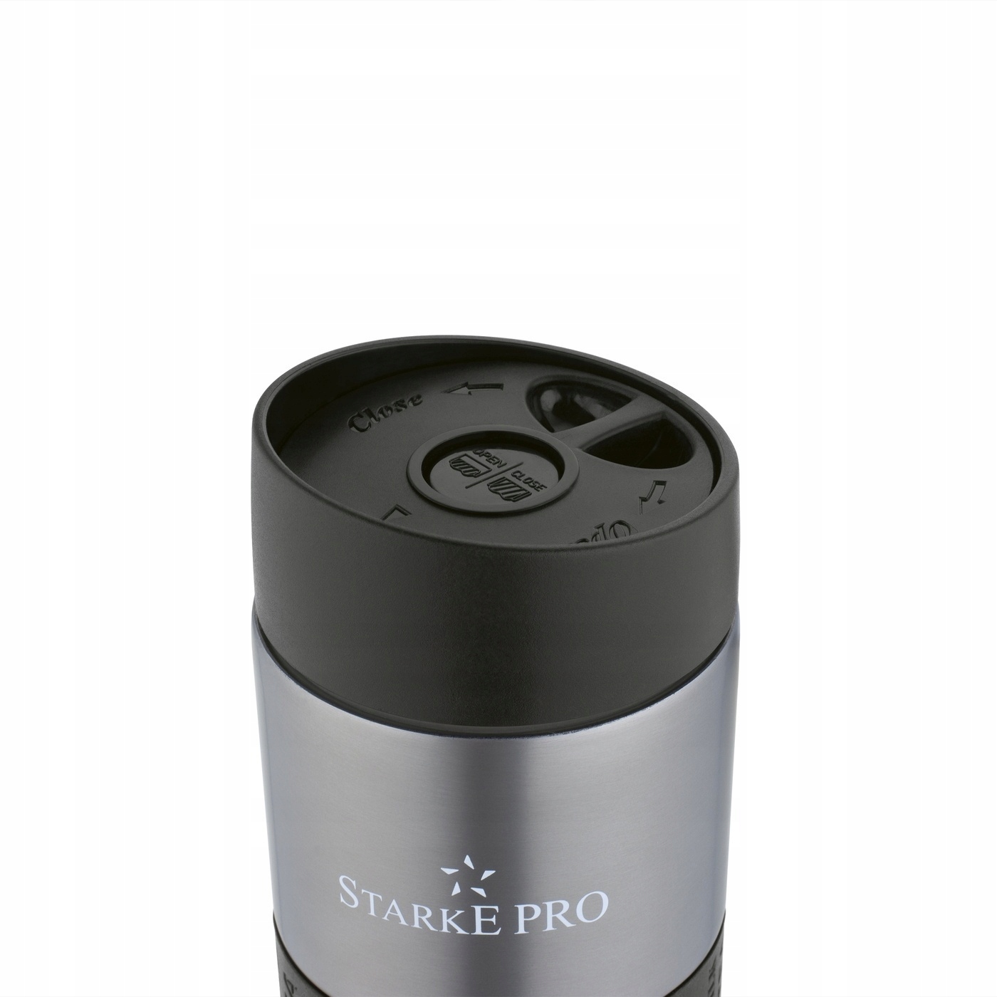 Срібна термокружка Starke Pro Mocha 350 мл виготовлена з нержавіючої сталі. Подвійні стінки та вакуум добре захищають вміст від втрати температури. Модель підходить для холодних і гарячих напоїв. Тонка форма корпусу та його часткова силіконова обробка забезпечують міцний хват. Засіб також захищає від опіків рук під час вживання кави чи чаю. Закриття чашки щільне і має профільований носик. Ви можете керувати ним однією рукою. Механізм розпечатування захистить вас від відкриття, наприклад, у рюкзаку. Його можна легко помити. Таку вакуумну кухоль можна подарувати активній людині. Крім того, ви можете відкрити закриваючий механізм і ретельно його очистити для підтримки максимальної гігієни.