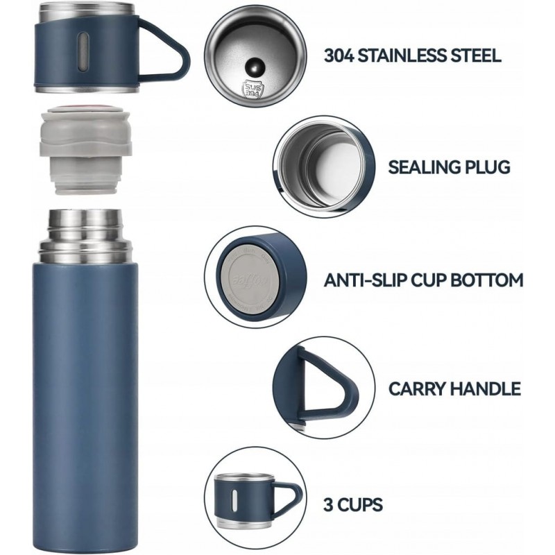- У набір входить Термос і 3 кухлі, упаковані в коробкуідеально підійдуть як подарунок.