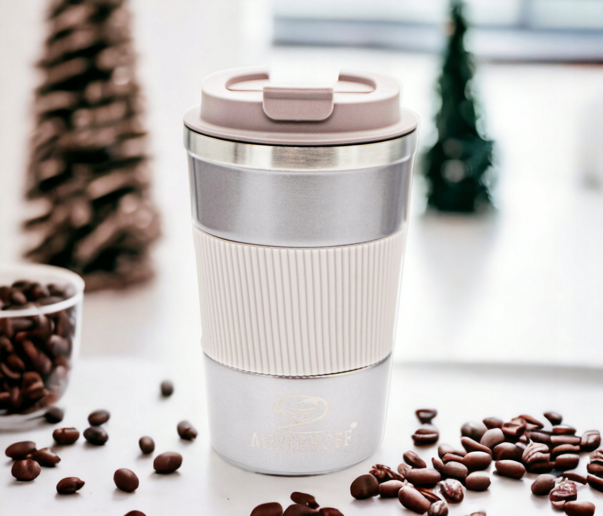 Термокружка Meyerhoff - це не тільки гарний дизайн, але й дивовижна функціональність. Забезпечуючи чудову якість і довговічність, цей продукт виправдає очікування навіть найвибагливіших клієнтів. Приємна на дотик поверхня та точна силіконова обробка роблять цей продукт не тільки естетичним, але й зручним у використанні. Виключно тонкий дизайн дозволяє вільно використовувати чашку в автомобільному тримачі.
