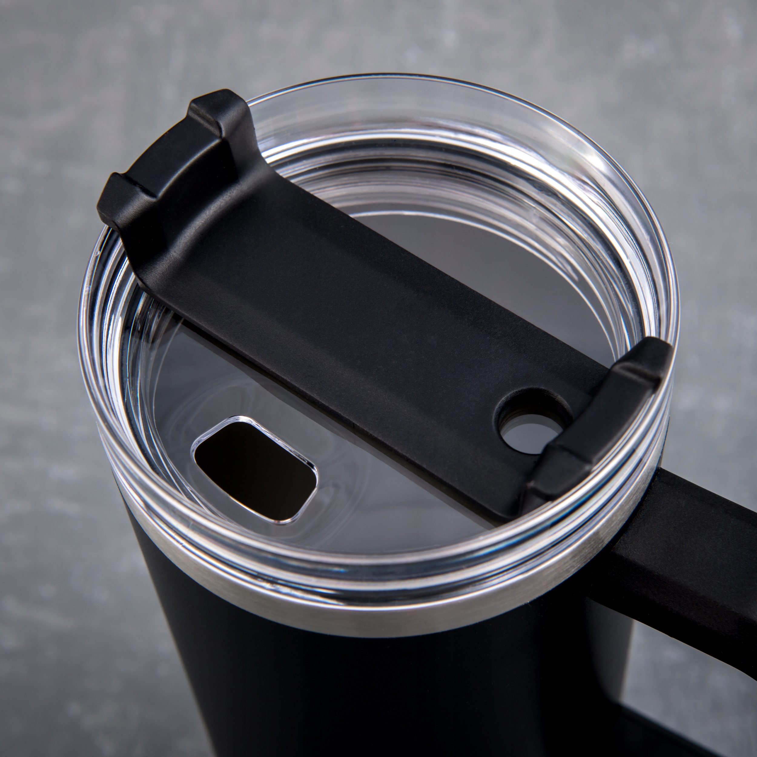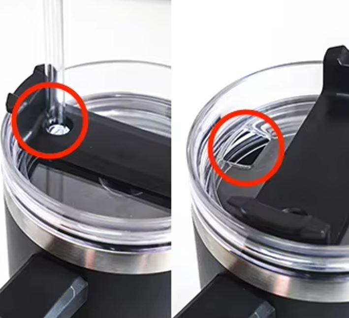 Кришка чашки, що закручується, має отвір для безпосереднього споживання напою. Також є поворотний елемент, який з одного боку закриває чашку, а з іншого має отвір для трубочки.
