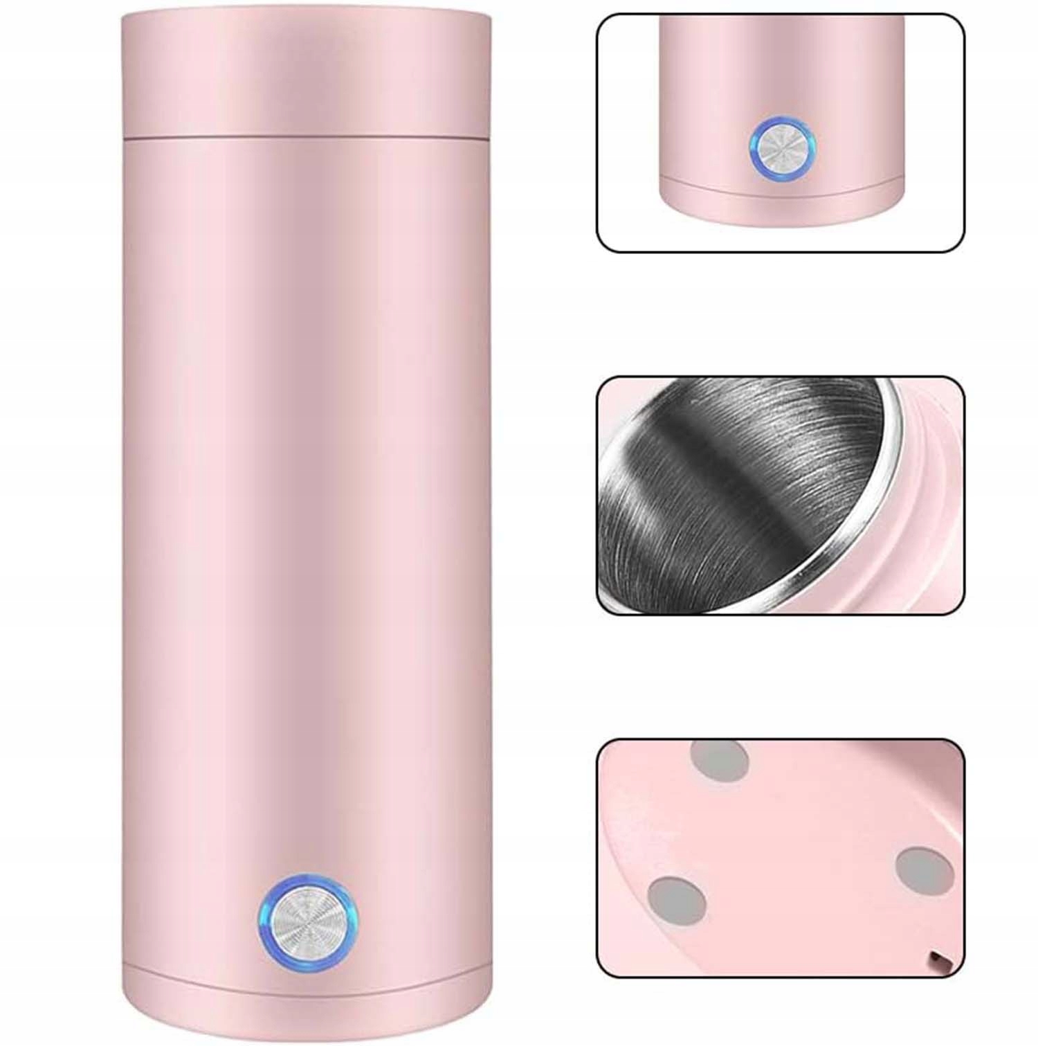 ТЕРМОКРУЖКА З ПІДІГРІВОМ АВТОМОБІЛЬНИЙ ЧАЙНИК ПОРТАТИВНИЙ 400МЛ 300ВТ РОЖЕВИЙ