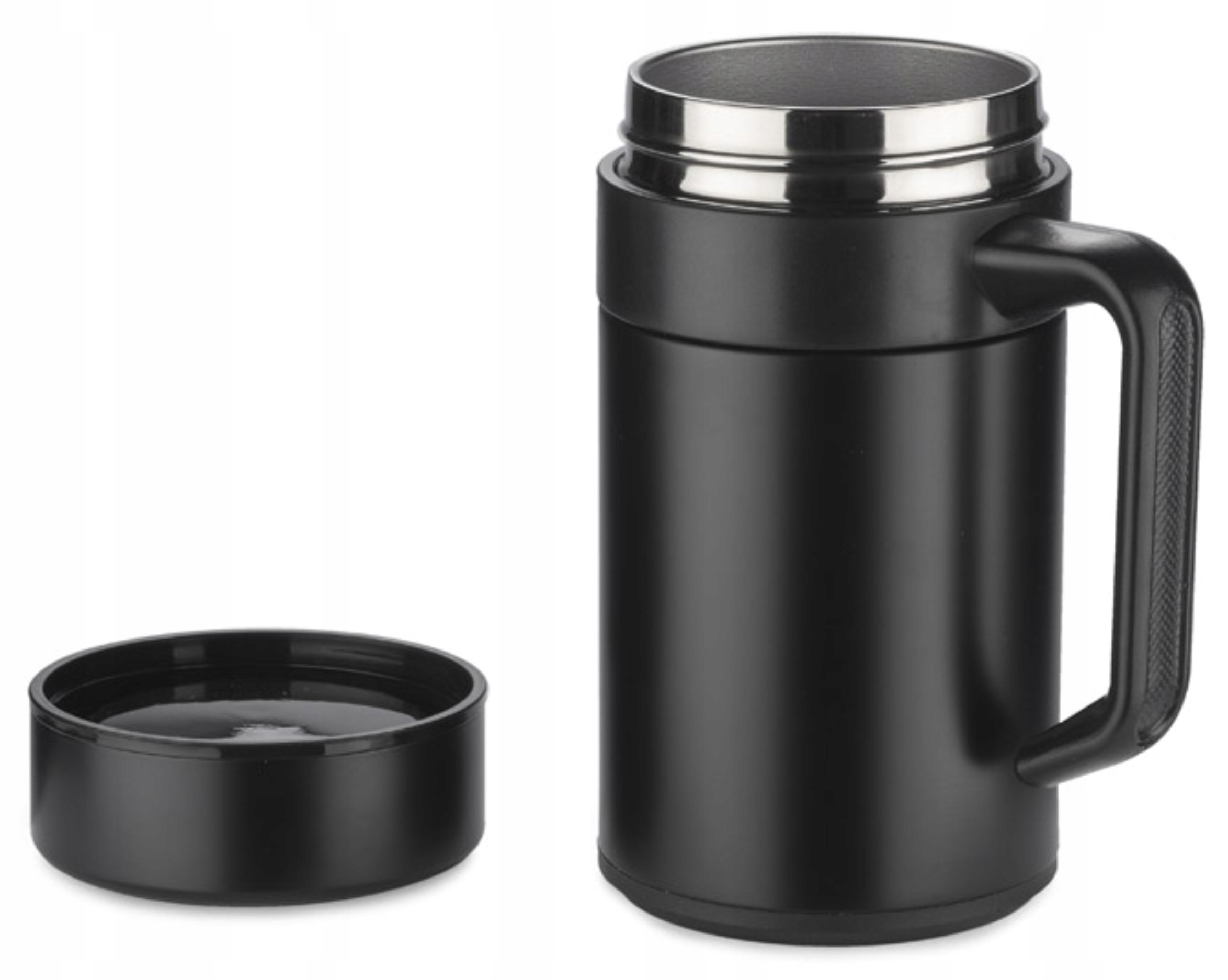 Кухоль із подвійною ізоляцією - зовнішня сторона виготовлена з нержавіючої сталі, а внутрішня — із пластику. Має практичну ручку і щільну прозору пластикову кришку з силіконовою прокладкою. Він має як вбудований отвір для пиття, так і соломинку. Фантастичний рекламний продукт для вашого бренду та щоденного використання.