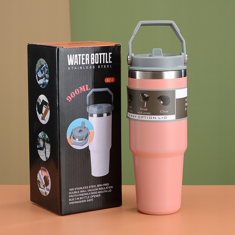 Термокружка ємністю 900 мл з соломинкою, виготовлена з двостінної нержавіючої сталі та вакуумною ізоляцією, ідеально зберігає температуру напоїв і зберігає їх смак. Ідеально підходить для кави, холодного чаю, коктейлів або охолодженої води - він забезпечить вам свіжість і смак надовго.