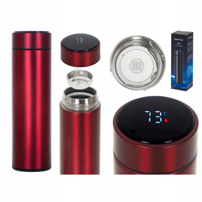 ТЕРМОКУХЛО ТЕРМОС SMART LED 500ML RED