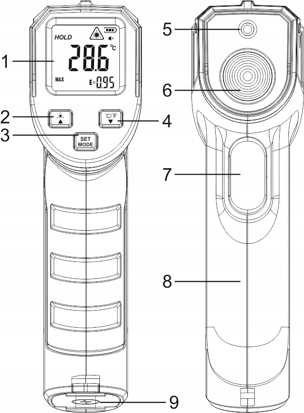 БЕЗКОНТАКТНИЙ ІНФРАЧЕРВОНИЙ ТЕРМОМЕТР З ЛАЗЕРОМ ТА ВИПРОМІНЮВАННЯМ CONTROL