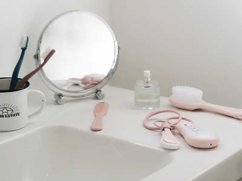 Усі елементи набору можна скріпити між собою на зручному кільці, що полегшує їх підвішування, наприклад, на гачок у ванній кімнаті та збереження порядку.