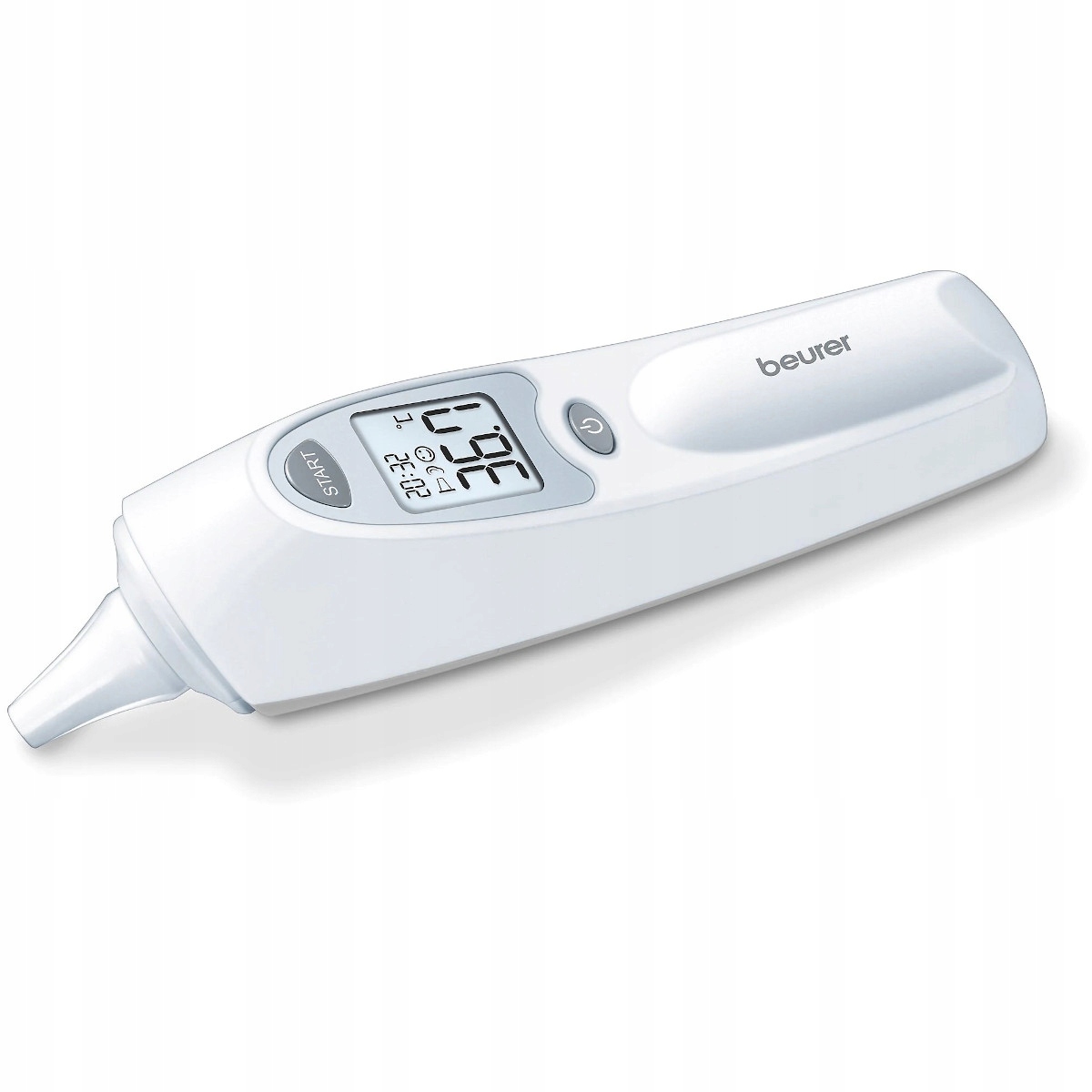 Вушний термометр Beurer FT 58 — це неінвазивний вушний термометр з інфрачервоним детектором, призначений для вимірювання температури тіла у вушному каналі дітей і дорослих. За допомогою вушного термометра також можна виміряти температуру в приміщенні і температуру предмета. Вушний термометр Beurer FT 58 був ретельно розроблений для точного, безпечного та швидкого вимірювання температури у вусі. Вушний термометр автоматично фіксує температуру тіла та об’єкта (з датою та часом), виміряну під час останніх 10 вимірювань. На дисплеї термометра використовується графіка зі смайликами. Якщо температура <38°C (100,4°F), на дисплеї з’явиться посмішка, якщо виміряна температура ≥38°C (100,4°F), на дисплеї з’явиться сумний смайлик.