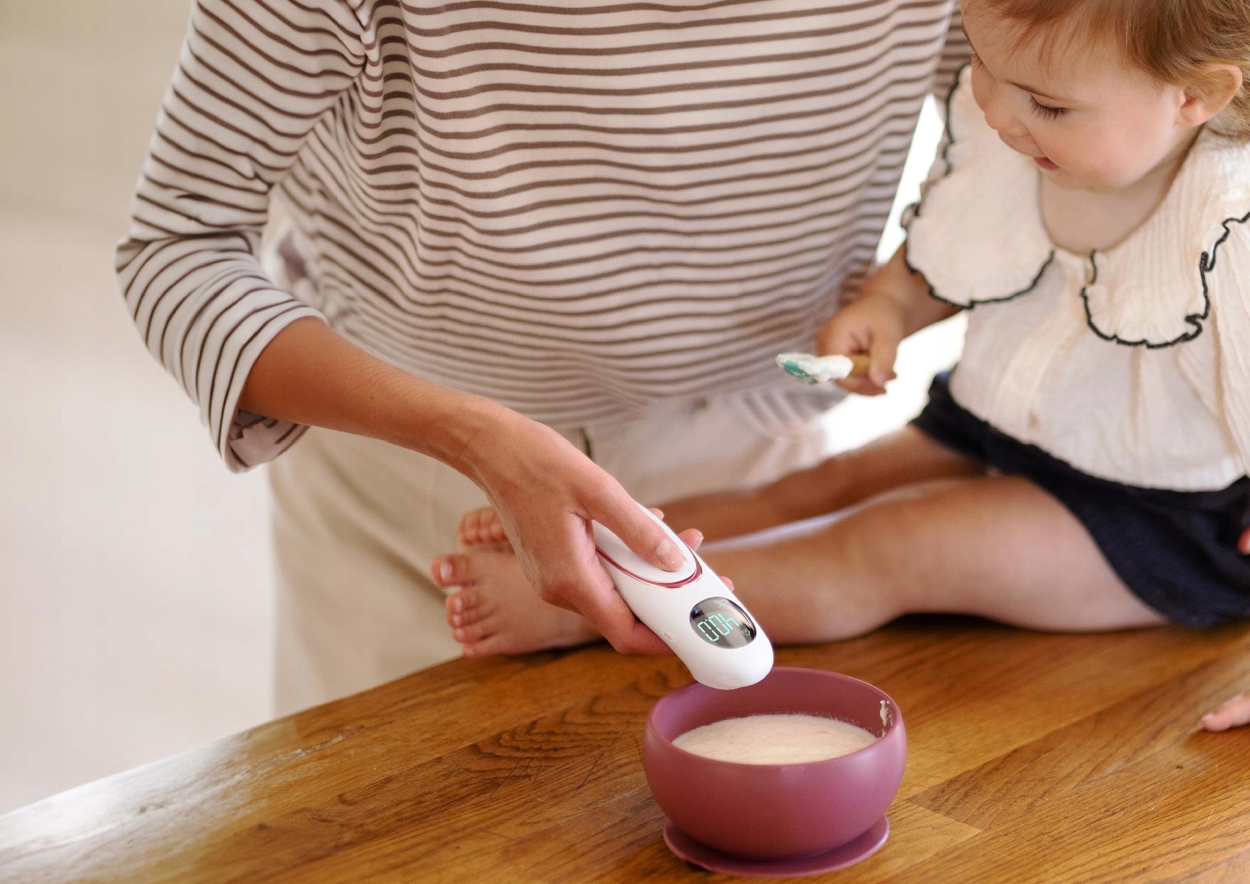 Термометр Neno Medic T06 допомагає визначити, чи правильна температура їжі. Завдяки цьому малюк зможе спокійно їсти свою страву, уникаючи опіків.