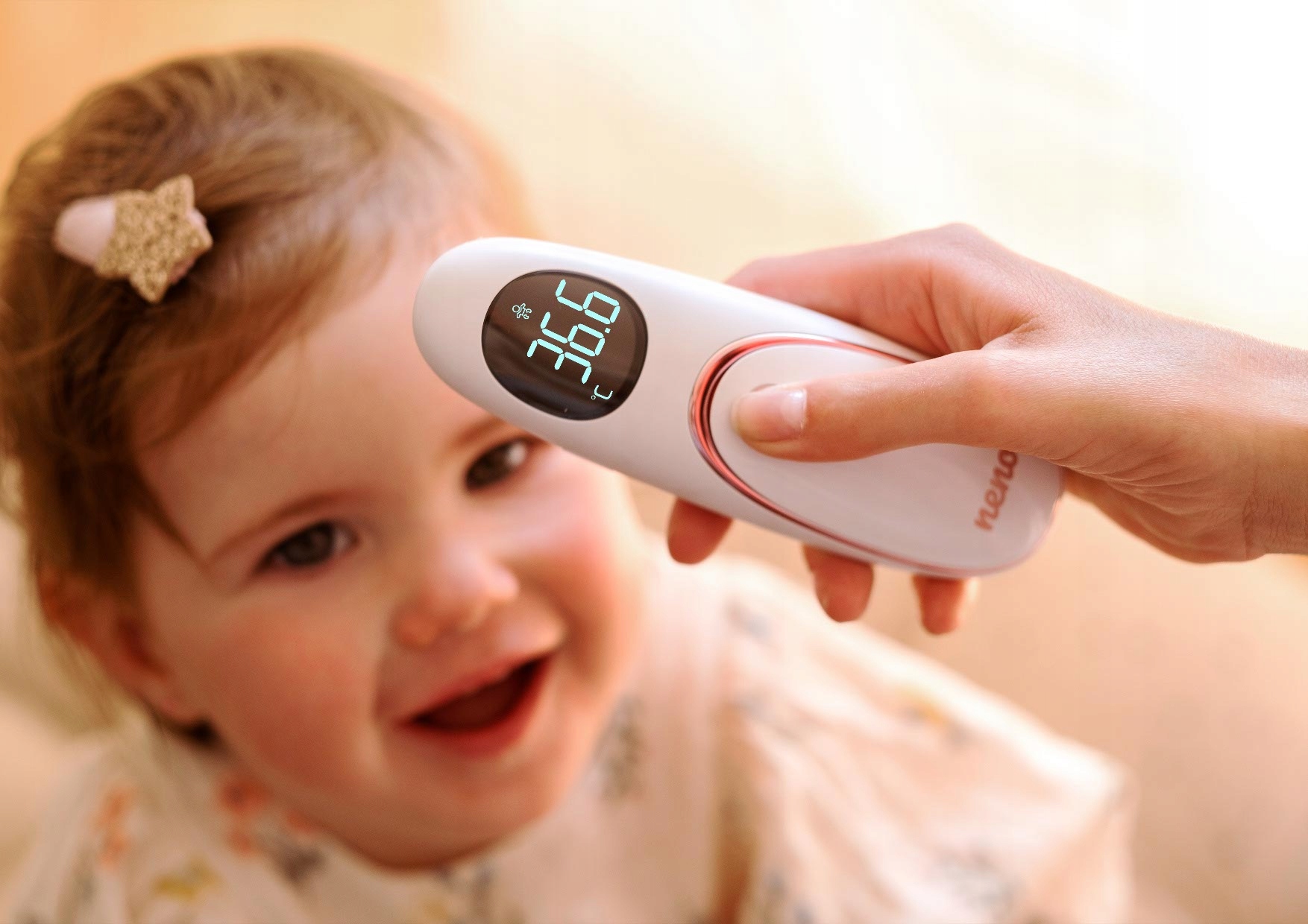 Neno Medic T06 ідеально підходить для нічних вимірювань. Вимірювання температури в безшумному режимі гарантує, що ви не розбудите сплячу дитину.