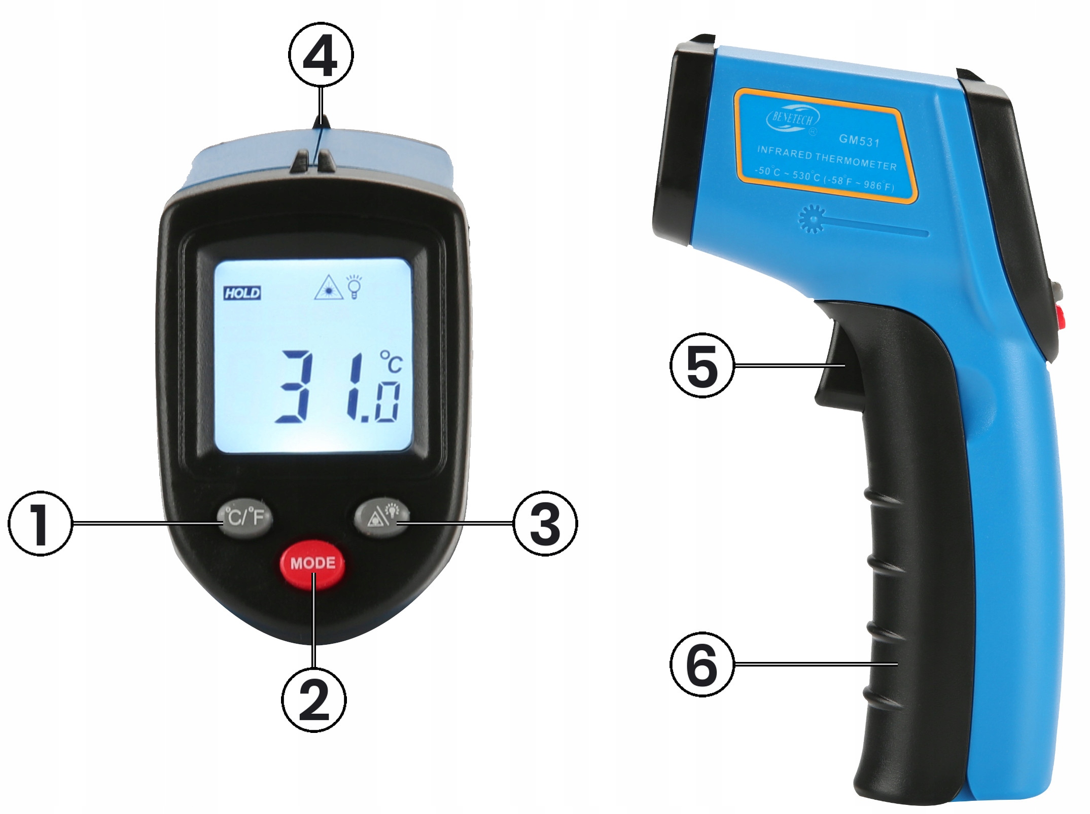 Прилад характеризується дуже високим діапазоном температур (-50 ~ +530°C) і точність вимірювання, просте управління, сучасний і ергономічний корпус.