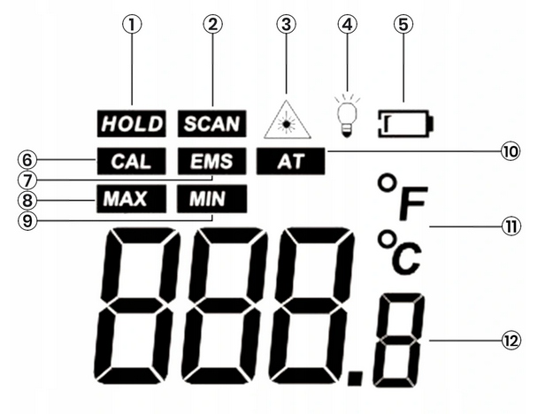 Цей пірометр призначений для промислового застосування. Не є медичним термометром і не використовується для вимірювання температури тіла.