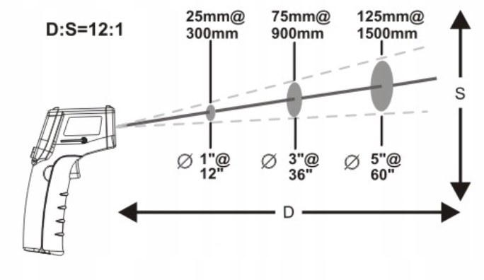 Співвідношення відстані вимірювання для цього пірометра становить 12:1