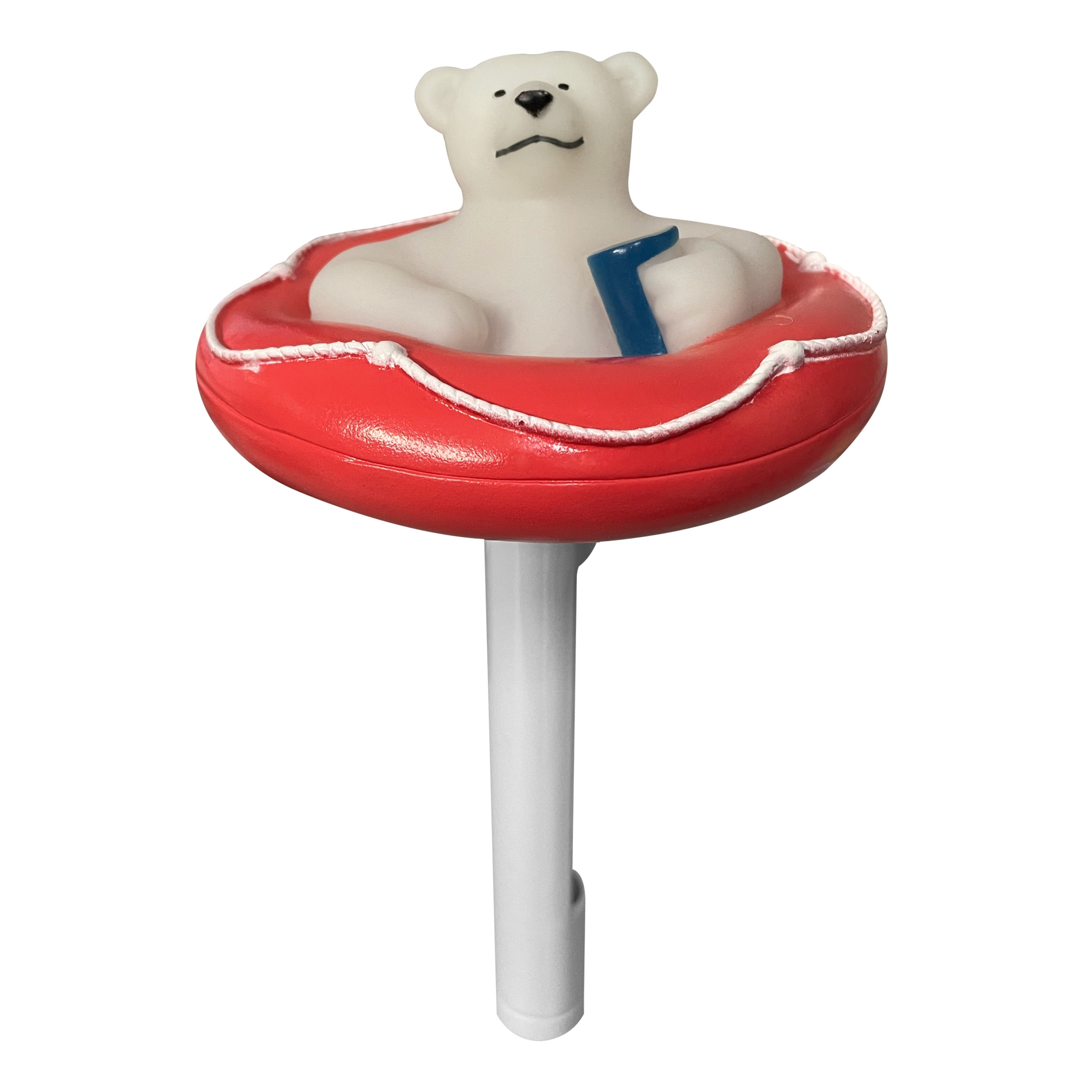 Плаваючий термометр є практичним доповненням до будь-якого типу садового басейну чи джакузі, а термометр для басейну з фігуркою тварини додатково розважить дітей. Він виготовлений з дуже твердого та міцного пластику, стійкого до хлору та УФ-променів. Він має шнурок, тож ви можете прив’язати його до драбини, скімера або краю басейну. Цей плаваючий термометр дозволить вам швидко і точно визначити температуру води в баку. Вільно плаваючи на поверхні води, він вказує результати, отримані як за Цельсієм, так і за Фаренгейтом. Це практичне доповнення, яке полегшить використання вашого басейну, а кольорові фігурки плаваючих тварин зроблять його ще більш привабливим в очах вашої дитини. Він водонепроникний, а відповідна конструкція забезпечує вертикальну плавучість. Безпечно для дітей - без скляних елементів.