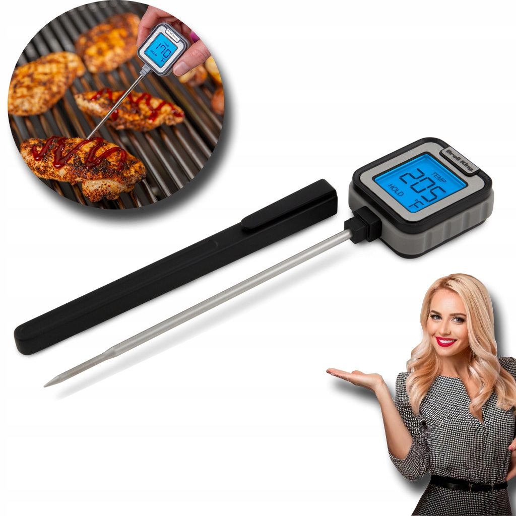 Пристрій оснащений чітким екраном підсвічування, який дозволяє швидко прочитати температуру в будь -яких умовах - навіть після темряви. Швидка реакція дозволяє негайно визначити ступінь випічки м'яса без необхідності довго чекати.