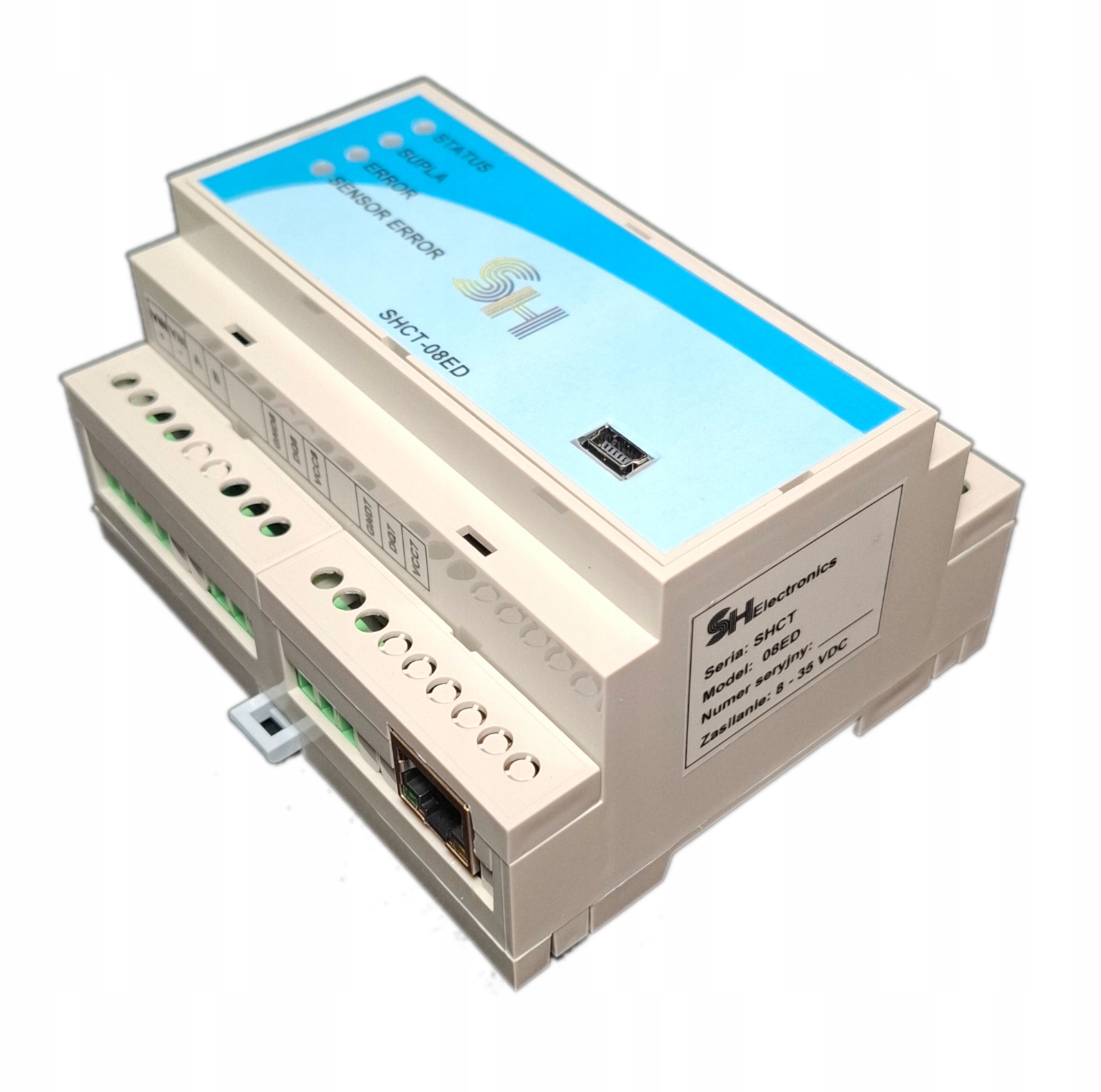 SHCT-08ED - це 8-канальний термометр, сумісний з датчиками DS18B20. Пристрій оснащений модулем Ethernet, завдяки якому ви можете спостерігати за значенням температури з будь-якої точки світу. Модуль працює з хмарою "SUPLA". Для належної роботи Інтернету користувач повинен мати безкоштовний обліковий запис на веб-сайті SUPLA.
