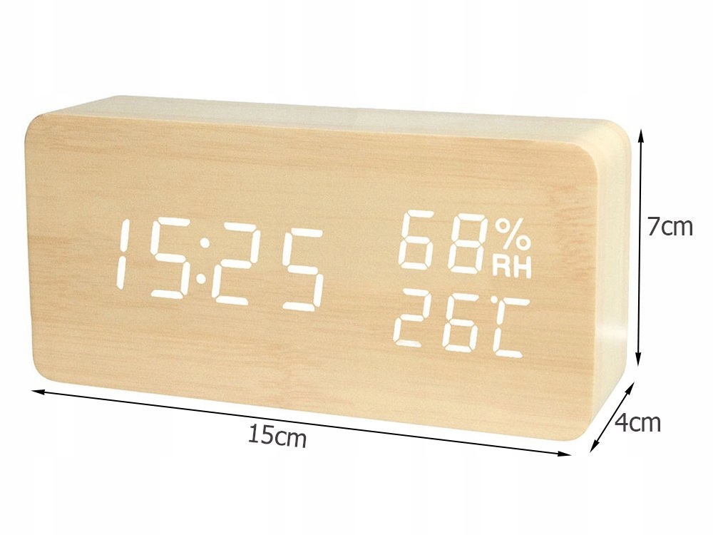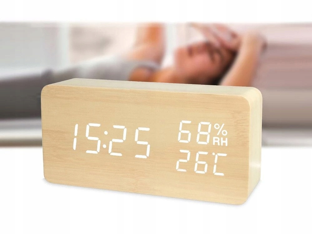 Термометр гігрометр годинник будильник BAMBOO LCD clap