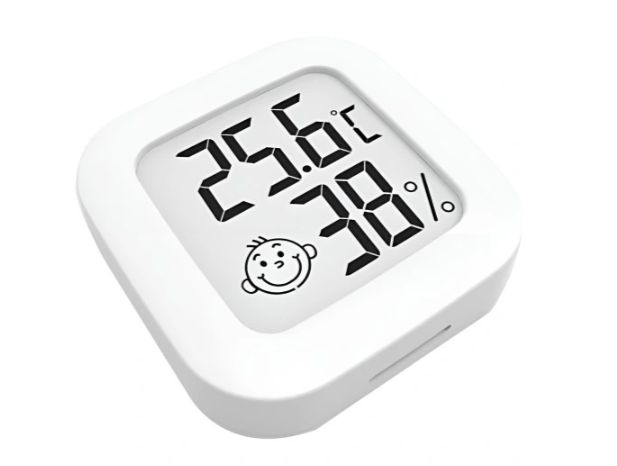 На розбірливому дисплеї відображається інформація про температуру та вологість навколишнього середовища. Крім того, на дисплеї є індикатор якості навколишнього середовища у формі смайлика.