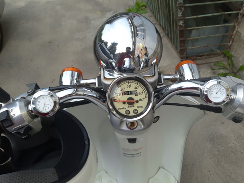 Елегантний хромований термометр практично для будь-якого керма. У комплекті з шестигранним ключем для встановлення тагумовою стрічкою для керма.