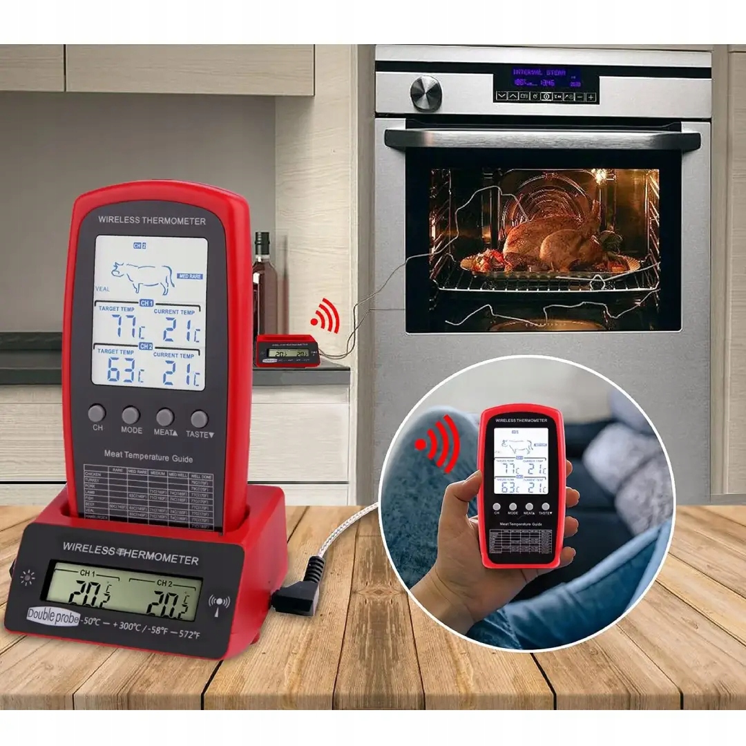 Termometr Kuchenny z Sondą do Mięsa Grilla Wędzarni Bezprzewodowy 2 Sondy