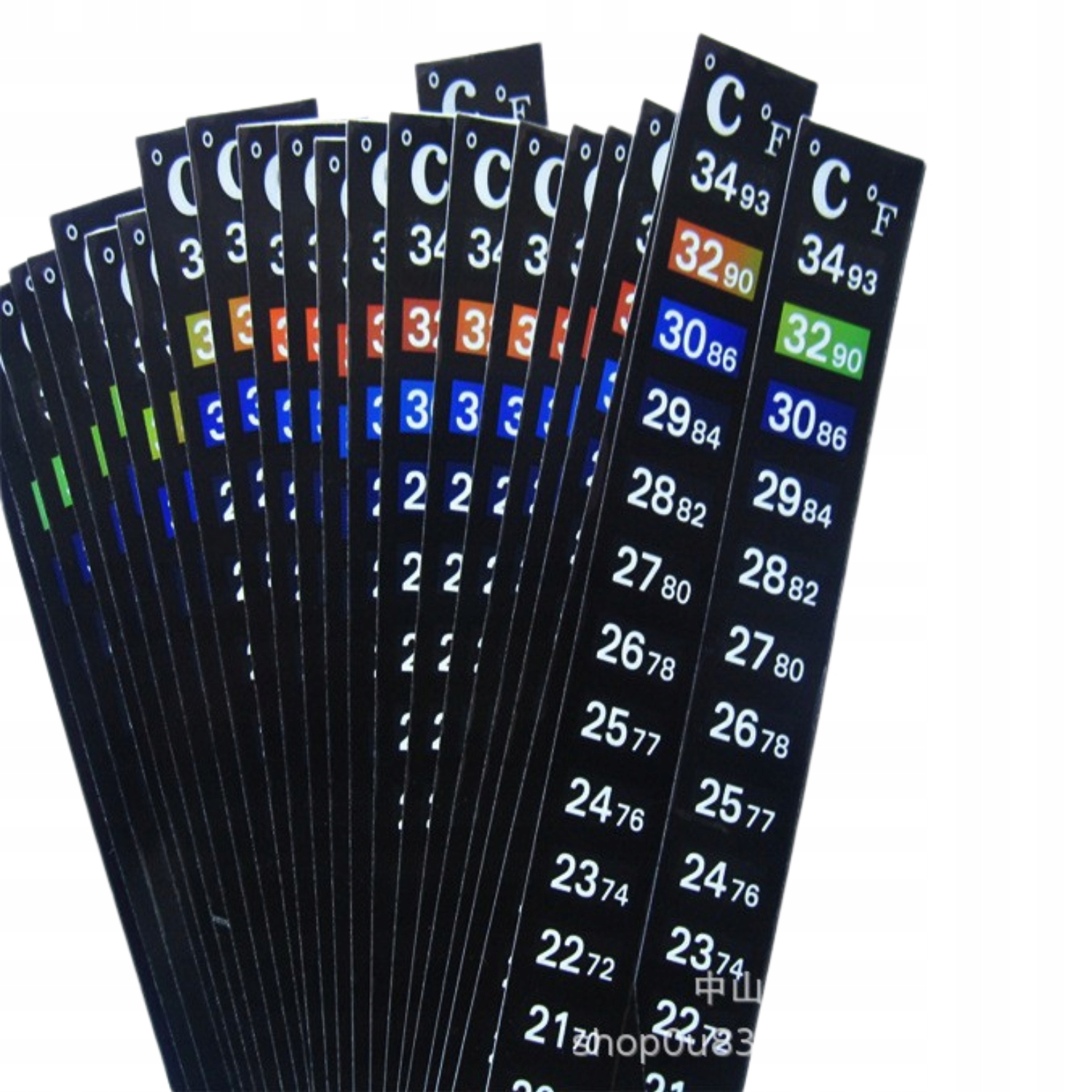 TERMOMETR PASKOWY DO AKWARIUM SAMOPRZYLEPNY ŁATWY MONTAŻ NA SZYBĘ 18–34°C