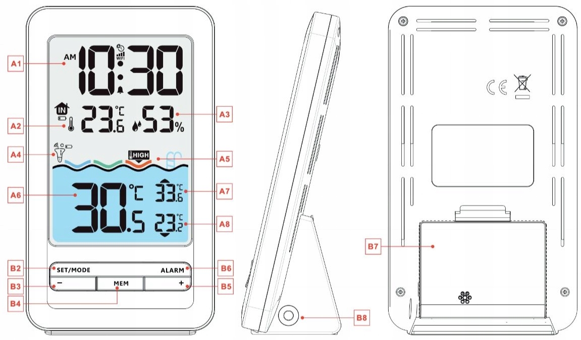 ▶ ️ Обсяг використання: вимірювальна температура та вологість у приміщенні, індикатор комфорту, вимірювання температури води, годинника, годинника