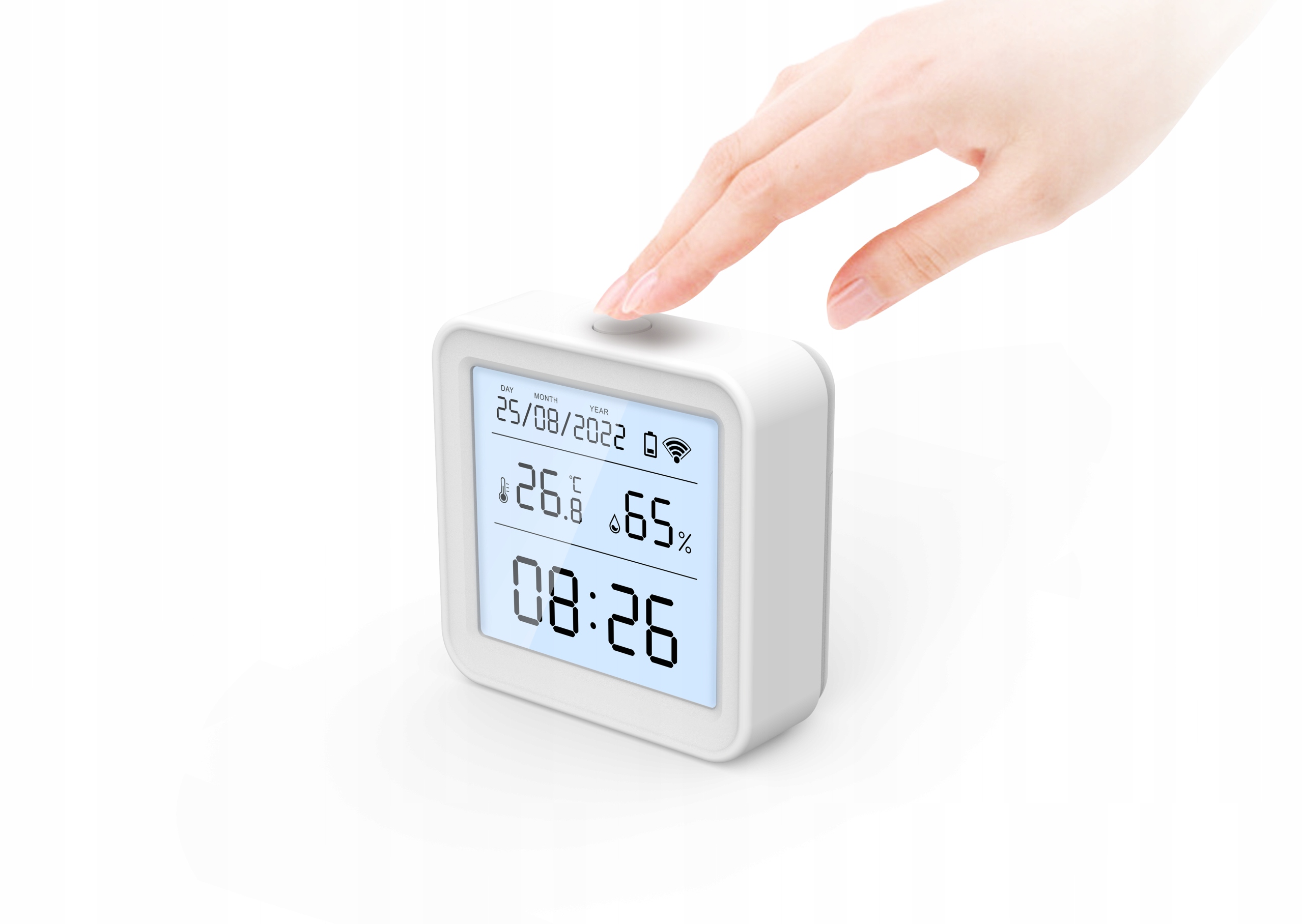 Датчик температури та вологості можна повішити і розмістити де завгодно, не займаючи місця , на столах, столах, столах, офісах, з висячими отворами ззаду, на стінах або за дверима.