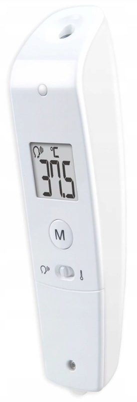 Термометр Rossmax HD 500 - це пристрій для безконтактного вимірювання температури на храмі у дітей та дорослих. Температуру вимірюють приблизно 5 см від лоба. rossmax HD500 вимірює не лише температуру тіла, але й середовище або вибрані предмети. Великою перевагою цієї моделі є екран підсвічування під час вимірювання температури, що дозволяє нам виконувати діяльність, коли дитина спить. Вбудована пам'ять дозволяє зберігати 9 останні вимірювання.