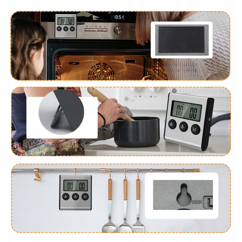 Наш прилад - це не тільки термометр, це також зручний і простий у використанні таймер, який працюватиме в багатьох ситуаціях. Ви можете легко встановити на ньому очікуваний час, і він повідомить вас про його досягнення за допомогою звукового сигналу. Готуйте ідеальні яйця некруто, пасту al dente і випікайте пухкі бісквітні коржі.