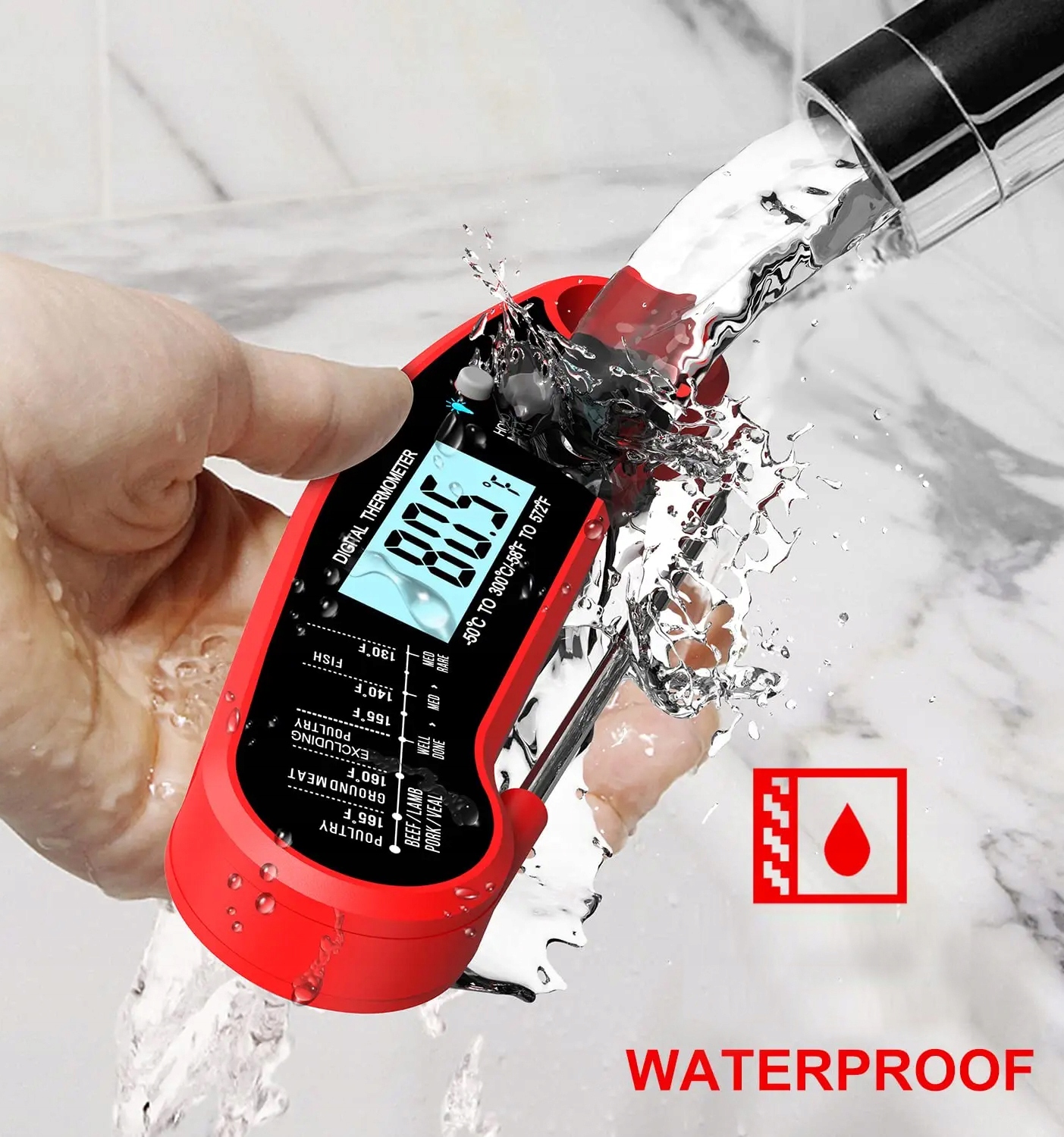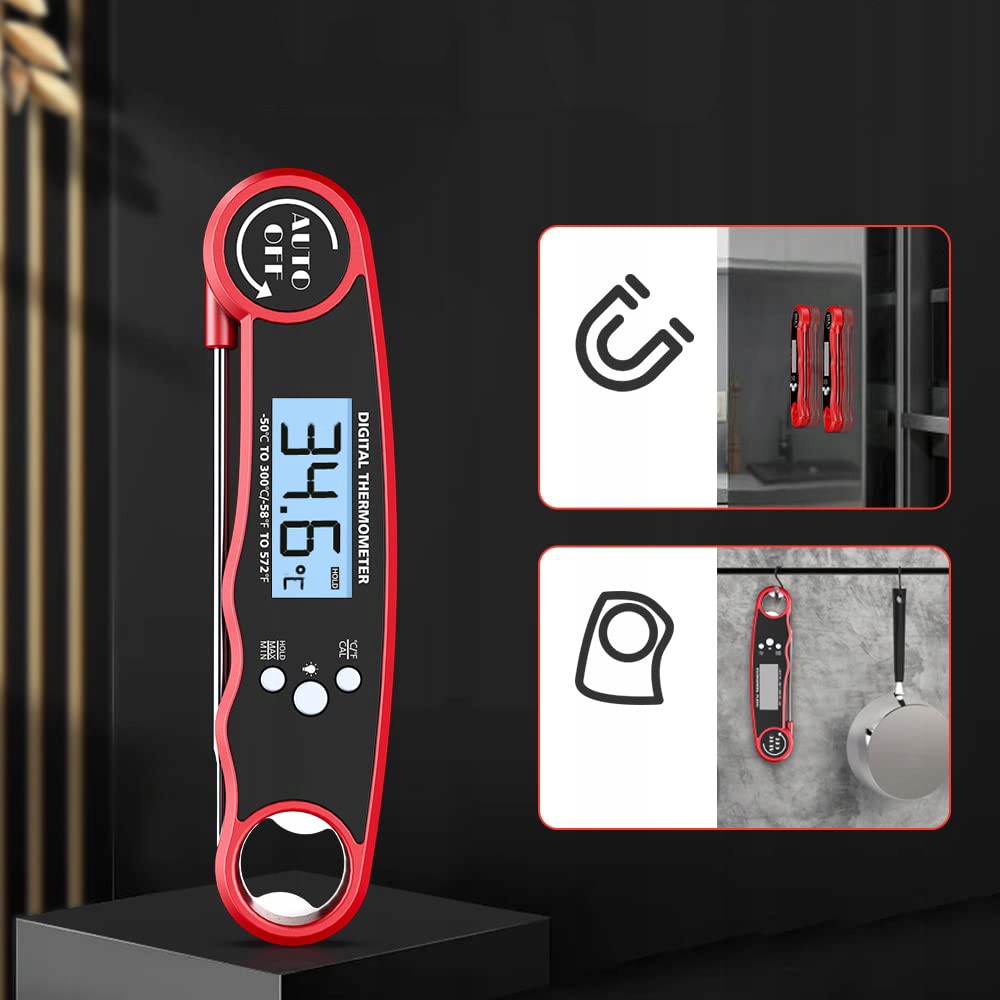 Termometr UltraSZYBKI Odczyt LCD Wbijany do +300°C Wodoodporny IPX6 Magnes