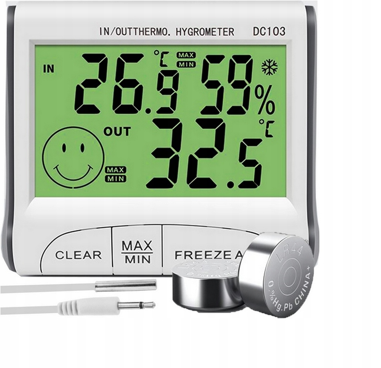 Термометр має висувну підставку завдяки якому він може бути розміщений та магнітну ручку повісити.