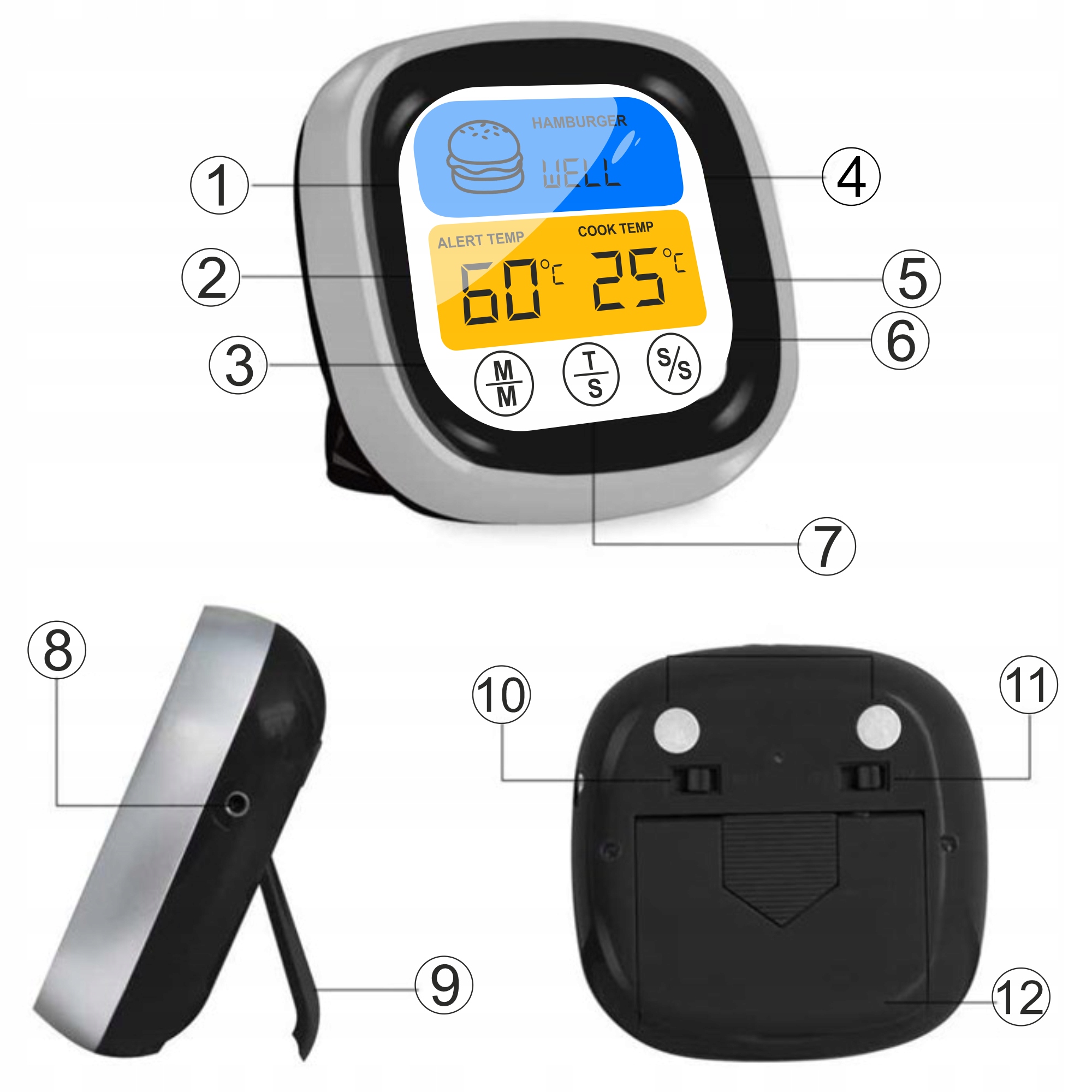 Пристрій розроблено таким чином, що його можна поставити на кухонну стільницю завдяки ніжці ззаду. Термометр також має вбудованиймагніт, який дозволяє повісити його на холодильник, духовку чи інші металеві поверхні.