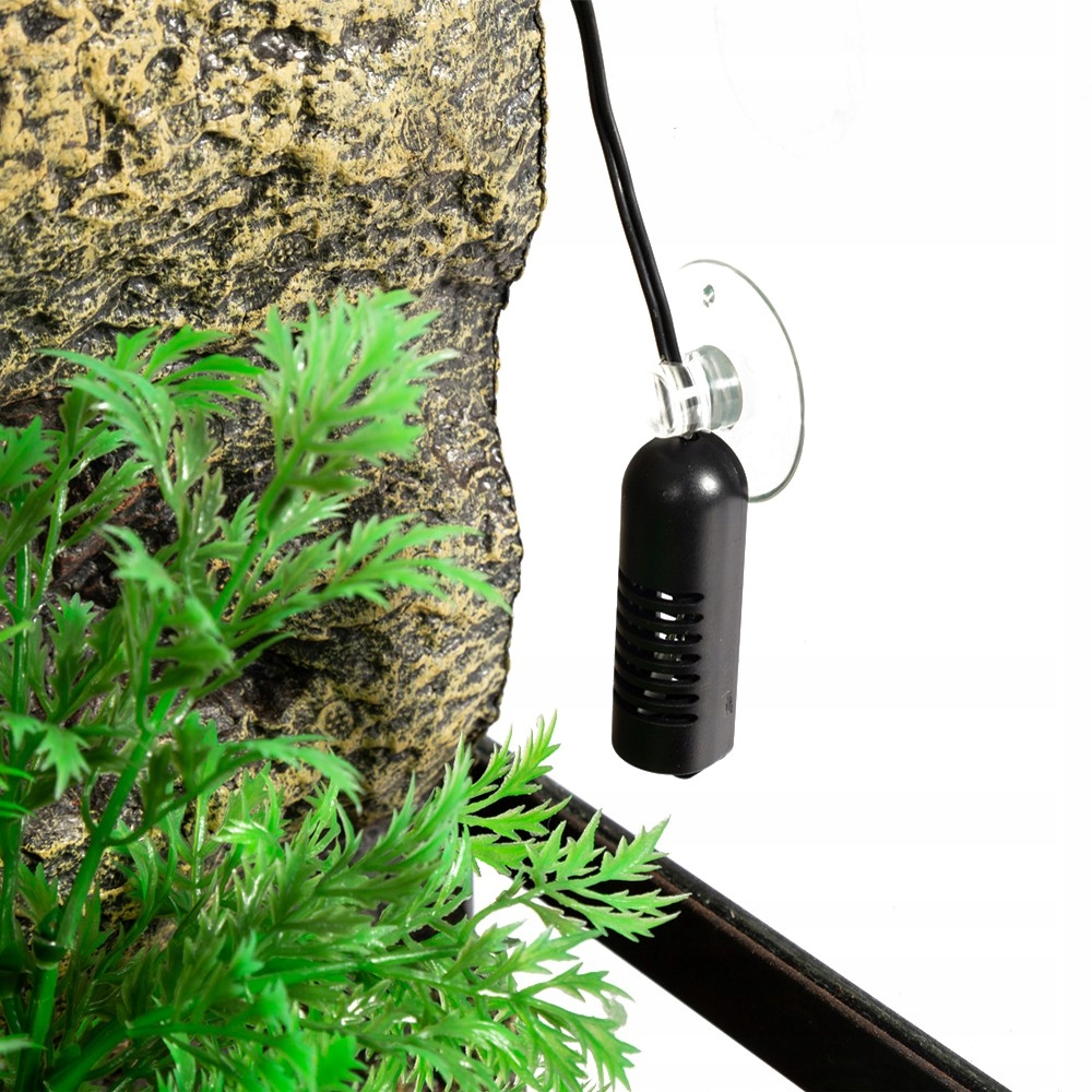 ⭕ Розширений пристрій постійно контролювати переважаючі умови в тераріумі та поза нею. Він вимірює температуру та вологість кожні 10 секунд і пам’ятає мінімальне та максимальне значення зчитування вимірювання.