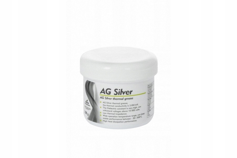 AG Silver - це термопаста з додаванням сполук срібла. Теплопровідність набагато вища, ніж у типових вуглець-кремнієвих сполук. Продукт відповідає вимогам директиви ROHS.