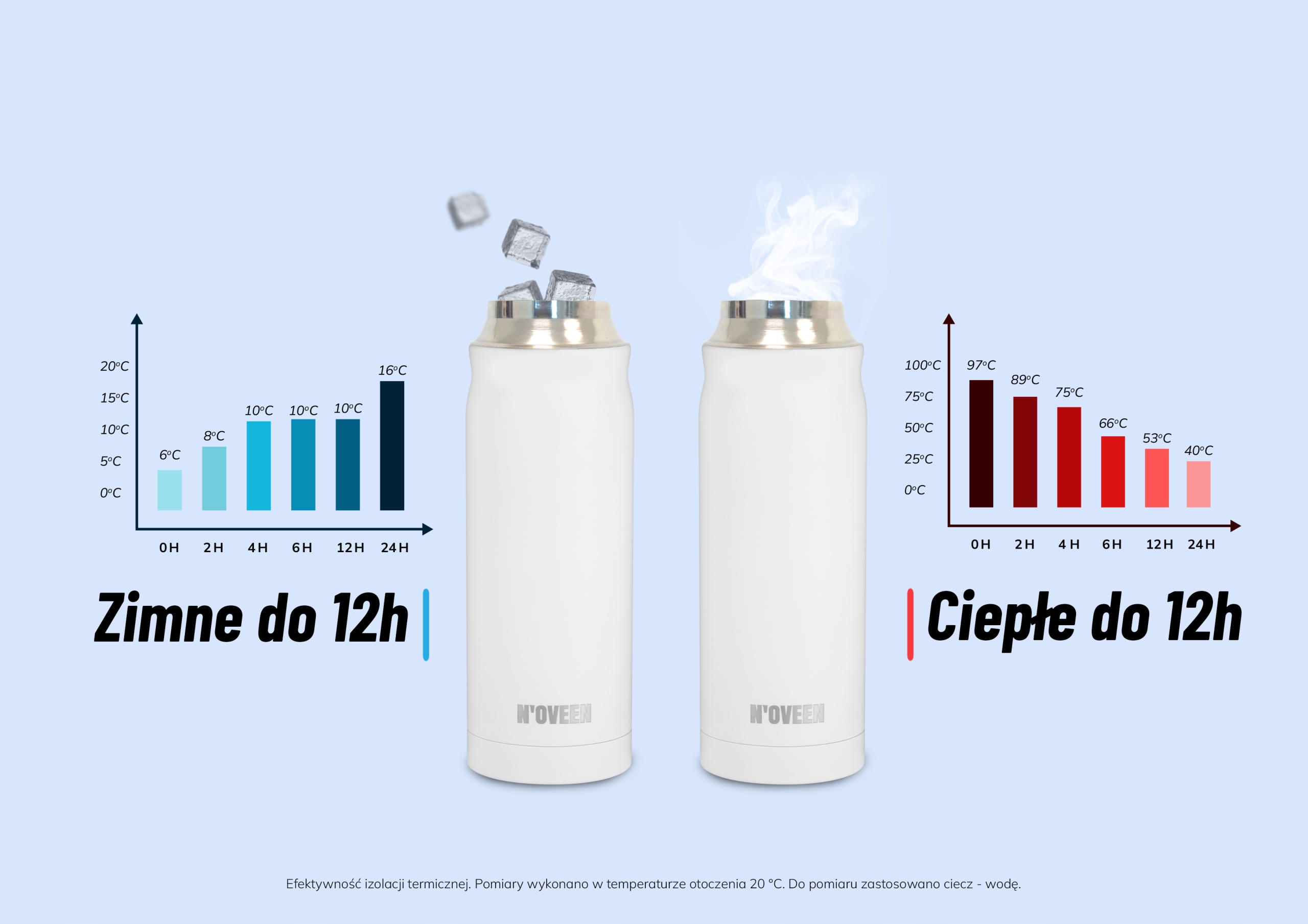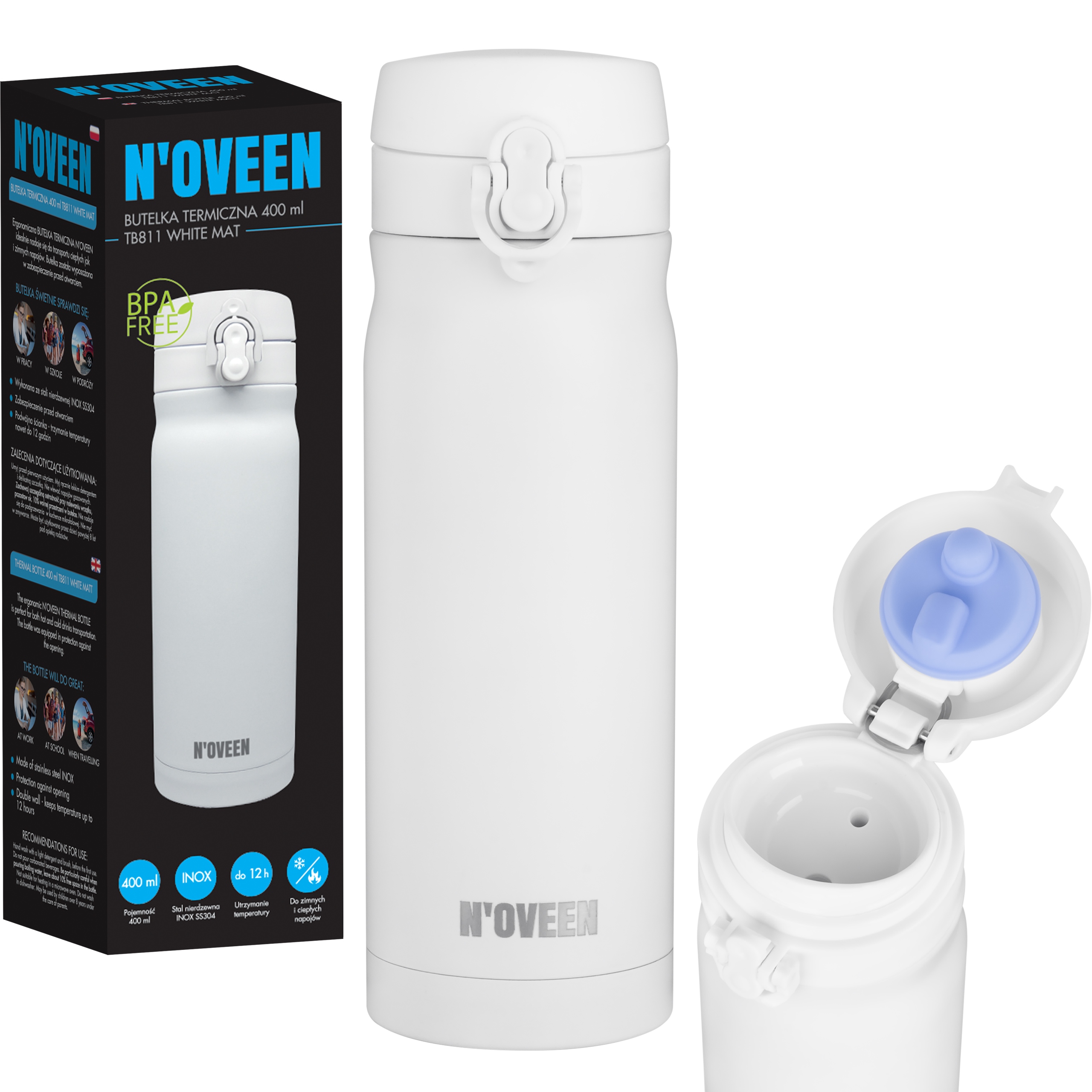 Термопляшка Noveen створена для зручного та естетичного зберігання ваших улюблених напоїв. Зберігаючи високу і низьку температуру напоїв, пляшка корисна цілий рік, незалежно від погоди. Він виготовлений з матеріалів, які не містять BPA. Використання високоякісної кислотостійкої сталі означає, що пляшка не утримує і не пропускає запахи, тому ви можете використовувати її протягом тривалого часу. Виріб міцний і стійкий до пошкоджень. Легке очищення дозволяє підтримувати належну гігієну. Термічна пляшка може стати першим чи наступним кроком до захисту навколишнього середовища шляхом зменшення виробництва одноразових відходів, наприклад чашок для кави чи чаю.