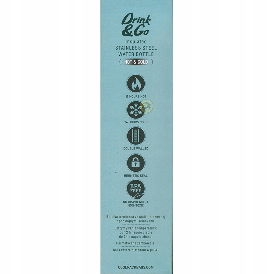 Подбайте про здоров'я та зволоження свого тіла з термосом Drink & Go від Coolpack. Відновлення рідини в організмі надзвичайно важливо, і тепер це може бути дуже легко! Зручний, місткий і міцний. Пляшка виготовлена з двостінної нержавіючої сталі і відмінно збереже температуру напою - низьку (24 години) або високу (12 годин). Затвор закручується і має герметичність. Термос Drink & Go від Coolpack в чарівних пастельних кольорах вміщує 500 мл рідини.