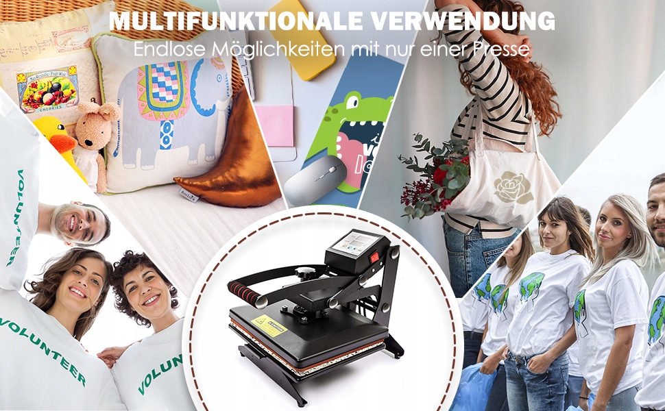 - Універсал: преса транслює до широкого спектру застосувань - від одягу до кераміки та інших предметів.