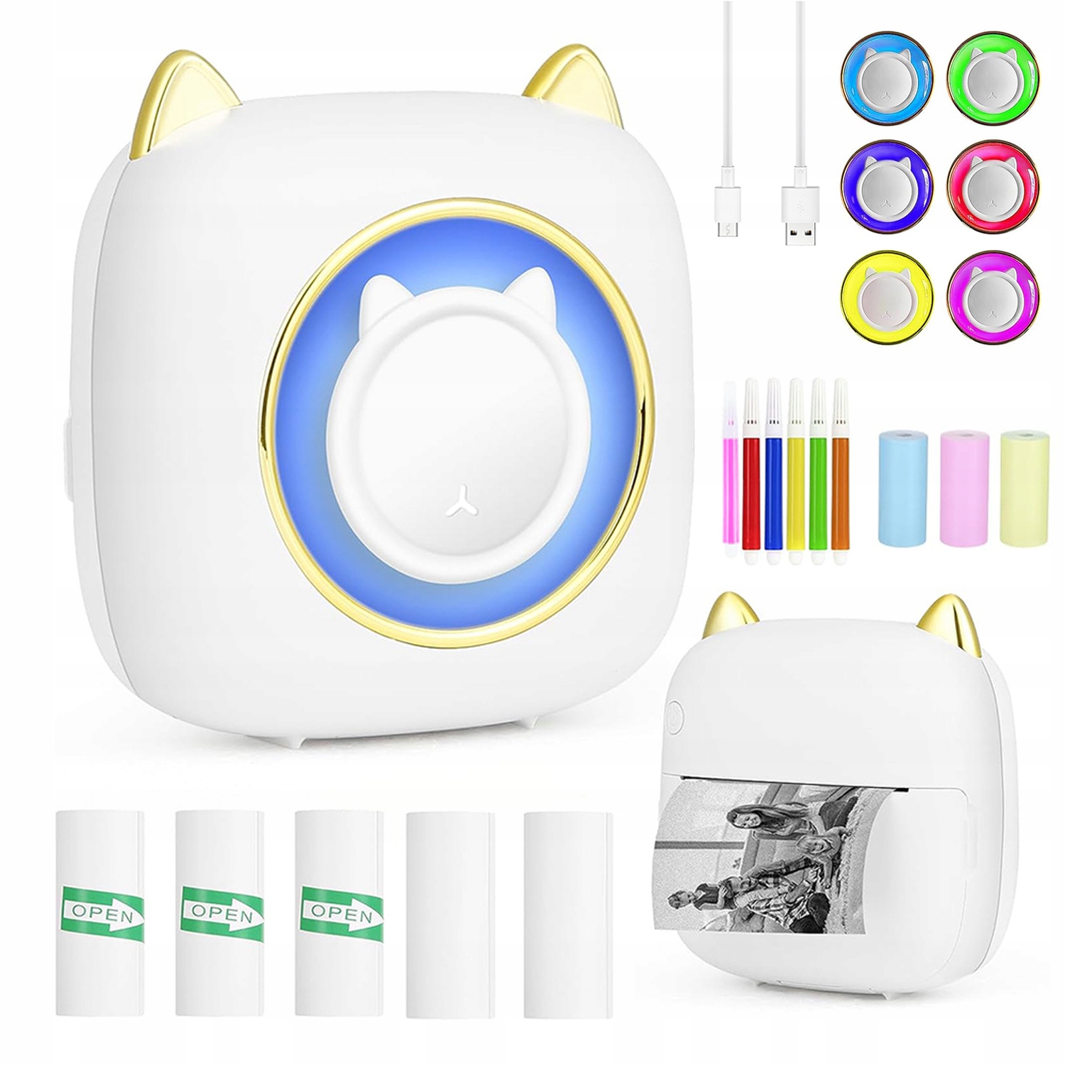 😺МІНІ ТЕРМОПРИНТЕР BLUETOOTH ДЛЯ ФОТОГРАФІЙ, ПОРТАТИВНІ НОТАТКИ з 7-КОЛЬОРНИМ світлодіодом