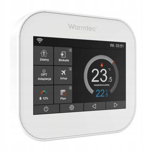 Програмований терморегулятор Warmtec ITS - це сучасний пристрій з можливістю дистанційного керування за допомогою телефону або планшета з Android або iOS. Він оснащений 3,5-дюймовим кольоровим РК-дисплеєм із сенсорним екраном.
