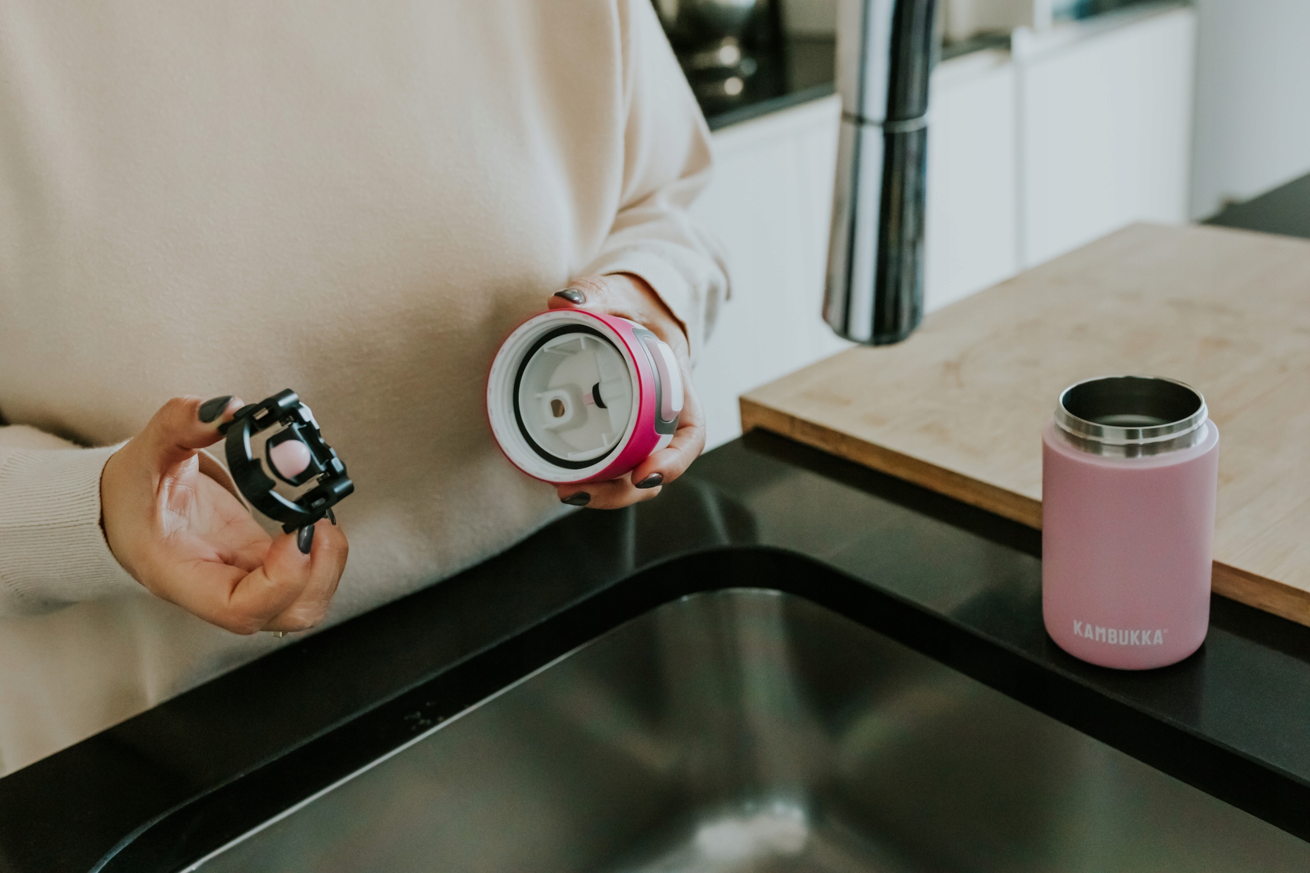 чашки та пляшки Камбука є універсальними. Ви можете вільно обмінюватися ними між різними моделями, залежно від ваших потреб. Усі горіхи Камбука стійкі до високих температур. Тому ваша теплова кухоль може стати пляшкою і навпаки.