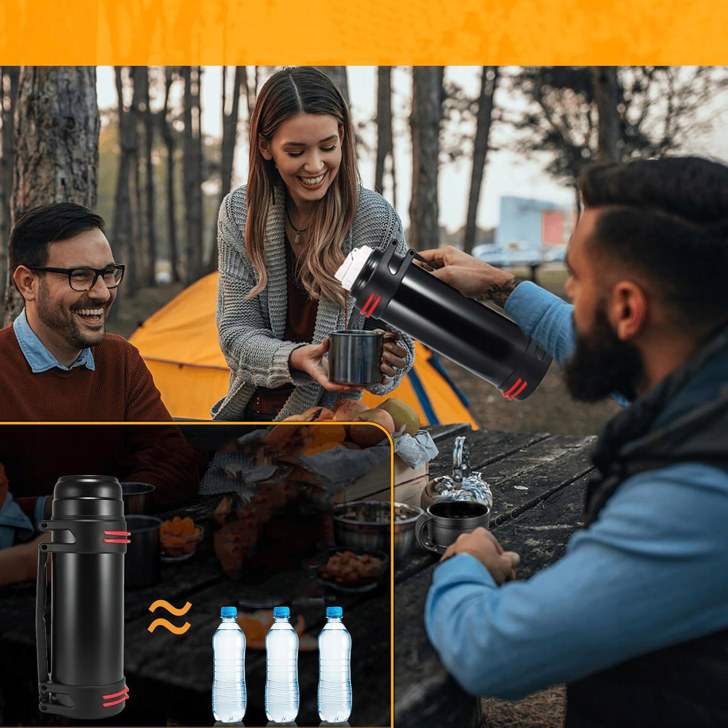🥛🥛【Ідеально підходить для подорожей і активного відпочинку】Цей великий термос забезпечує гарячу воду під час подорожей і активного відпочинку, тому вам не доведеться турбуватися про пошуки гарячої води. Портативний дизайн полегшує його перенесення.